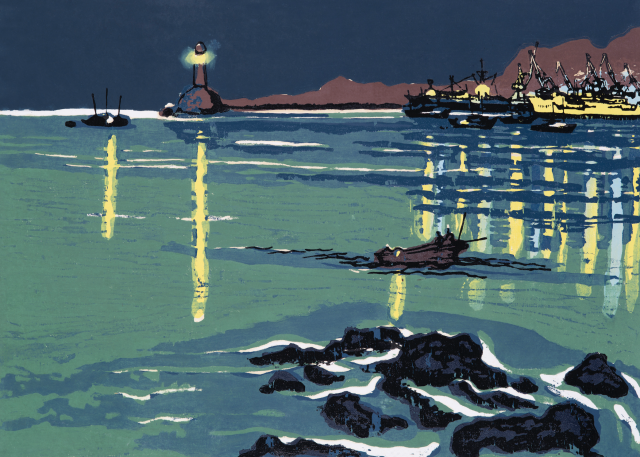 海港燈光 賴少其 44.5x62.5cm 套色版畫 1974年 廣東美術(shù)館藏