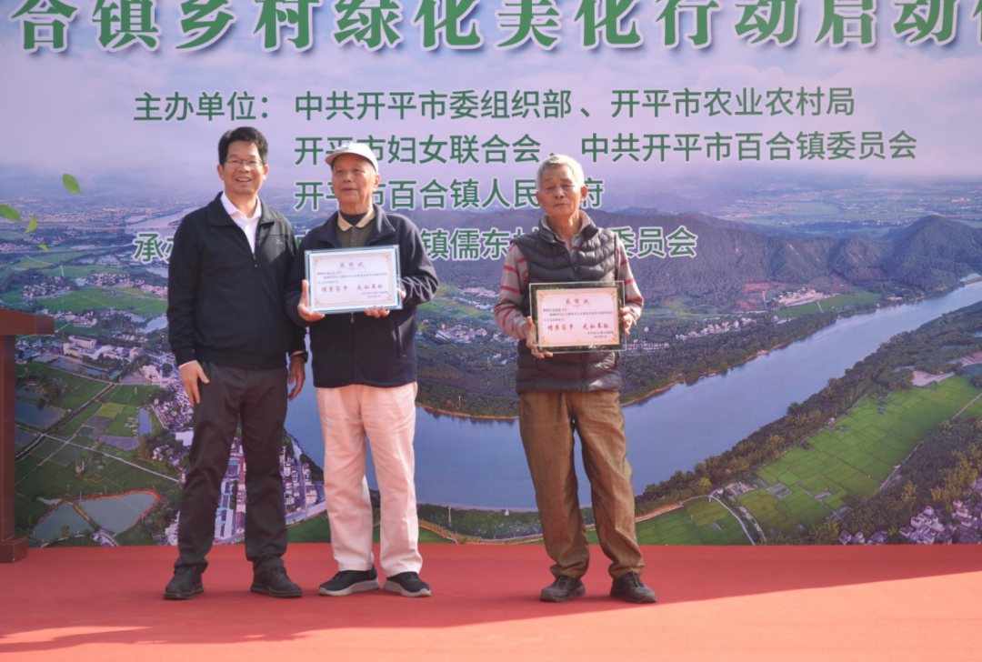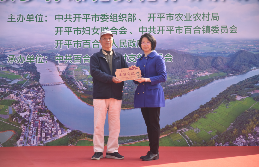 開平市婦女聯(lián)合會黨組書記、主席勞念華為獲評省級“美麗庭院”戶榮譽稱號的家庭代表頒發(fā)榮譽牌匾,開平市委組織部副部長鄺鈞毅為獲評開平市“美麗庭院”戶榮譽稱號的家庭代表頒發(fā)榮譽牌匾。2024年,百合鎮(zhèn)打造出省級“美麗庭院”1戶,開平市“美麗庭院”3戶。其中,胡志良家庭認定為省級“美麗庭院”戶,胡兆策家庭、胡健述家庭、胡耀幟家庭認定為開平市“美麗庭院”戶。