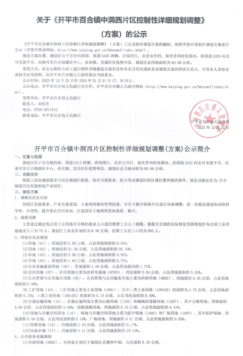 《開平市百合鎮(zhèn)中洞西片區(qū)控制性詳細(xì)規(guī)劃調(diào)整》(方案)已完成初步規(guī)劃方案的編制,按程序現(xiàn)對該初步規(guī)劃方案進(jìn)行公示(詳情可登錄網(wǎng)站:http://m.dztianyi.com/bhzrmzf/index.html)。