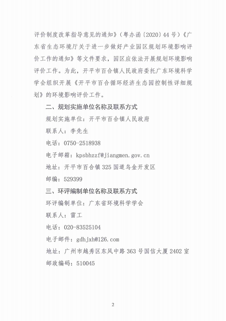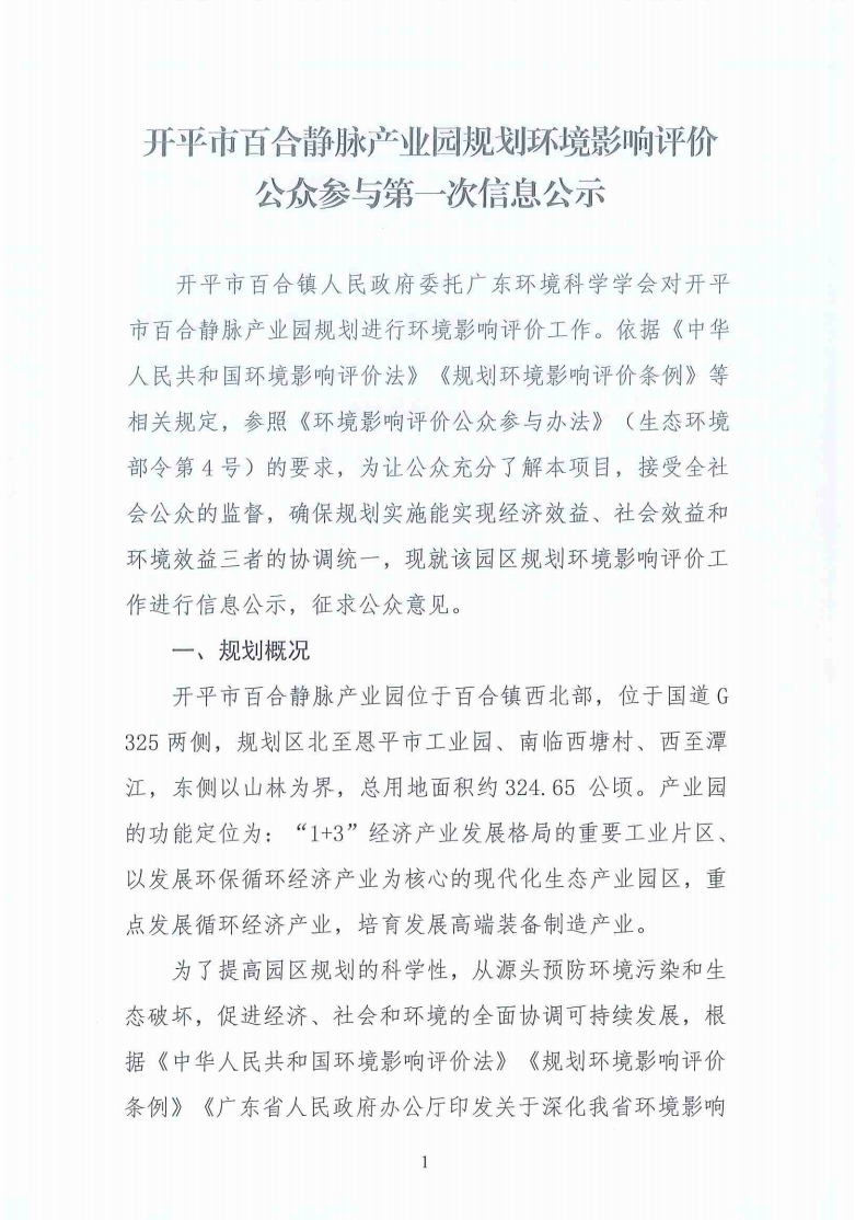 開平市百合靜脈產(chǎn)業(yè)園規(guī)劃環(huán)境影響評(píng)價(jià)公眾參與第一次信息公示