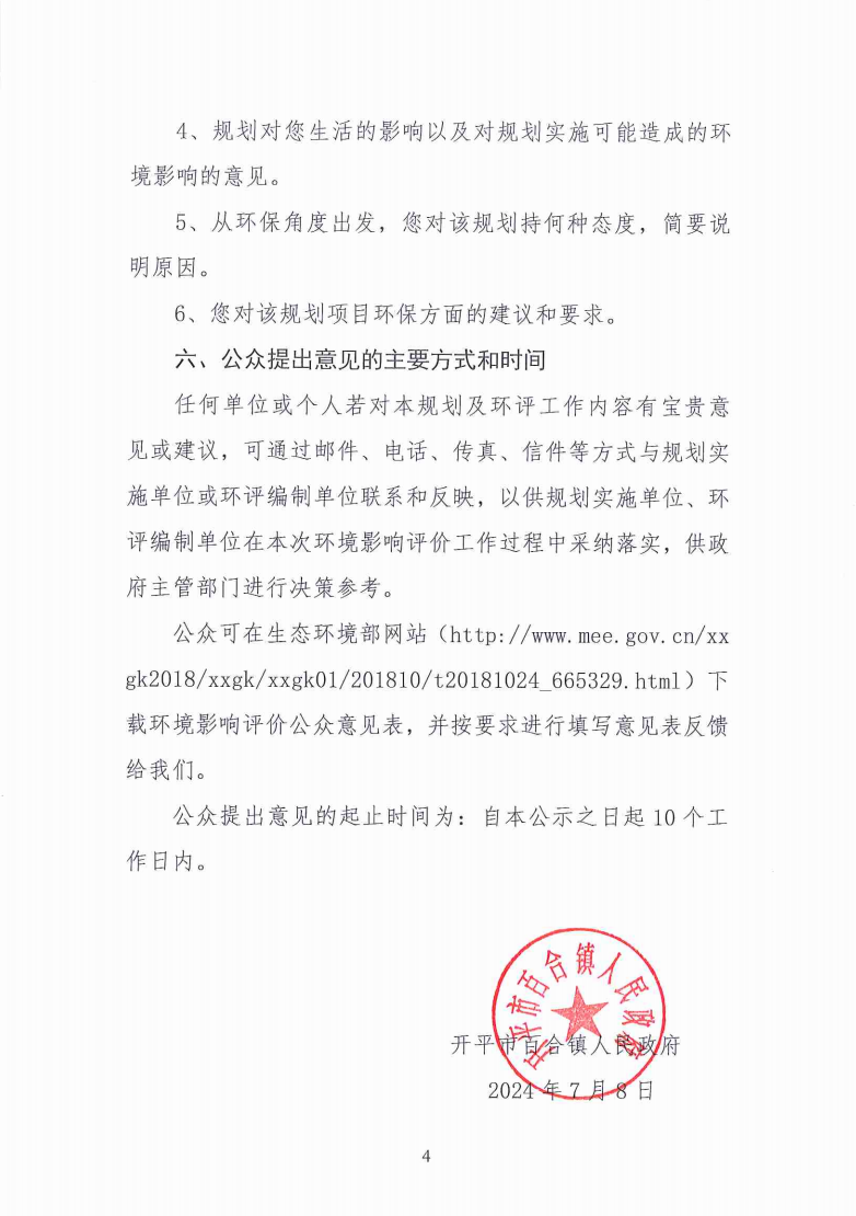 開平市百合靜脈產(chǎn)業(yè)園規(guī)劃環(huán)境影響評(píng)價(jià)公眾參與