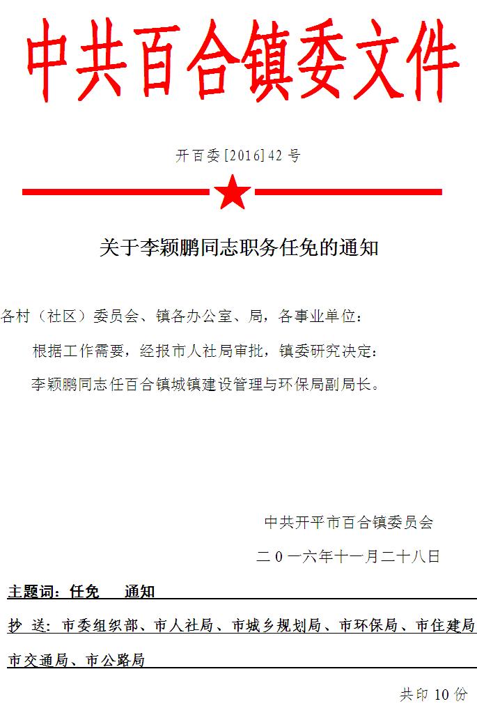 關(guān)于李穎鵬同志職務(wù)任免的通知【開百委[2016]42號】