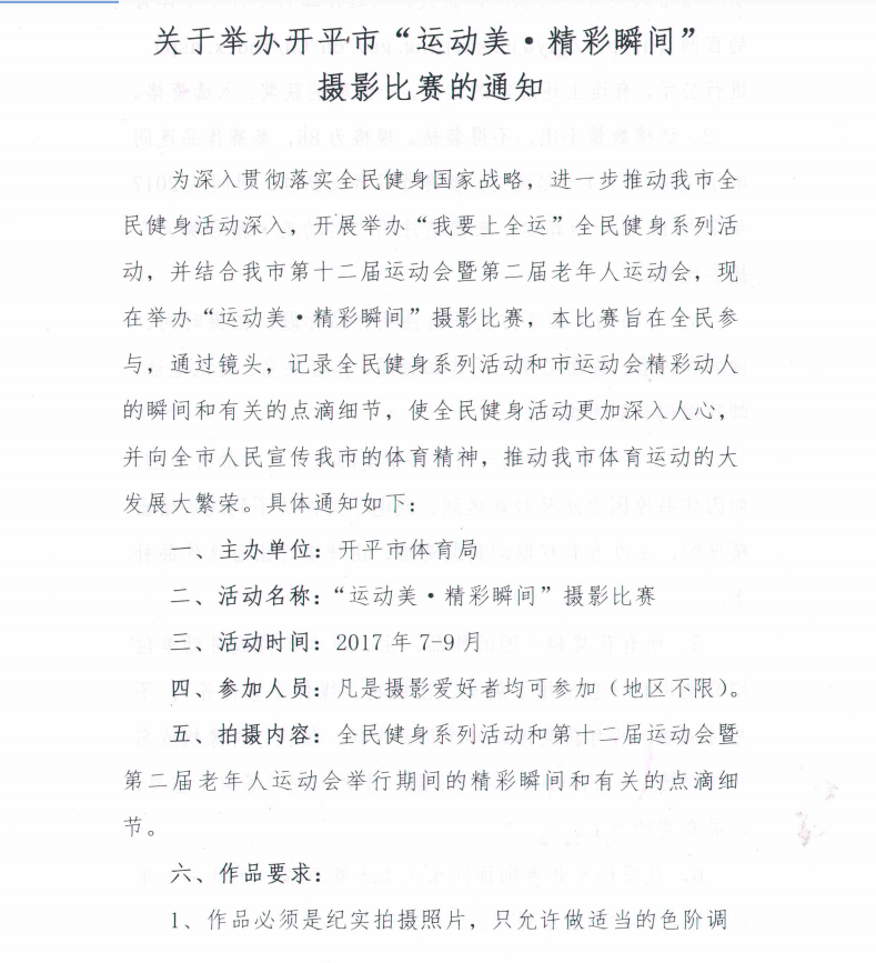關于舉辦開平市“運動美·精彩瞬間”攝影比賽的通知