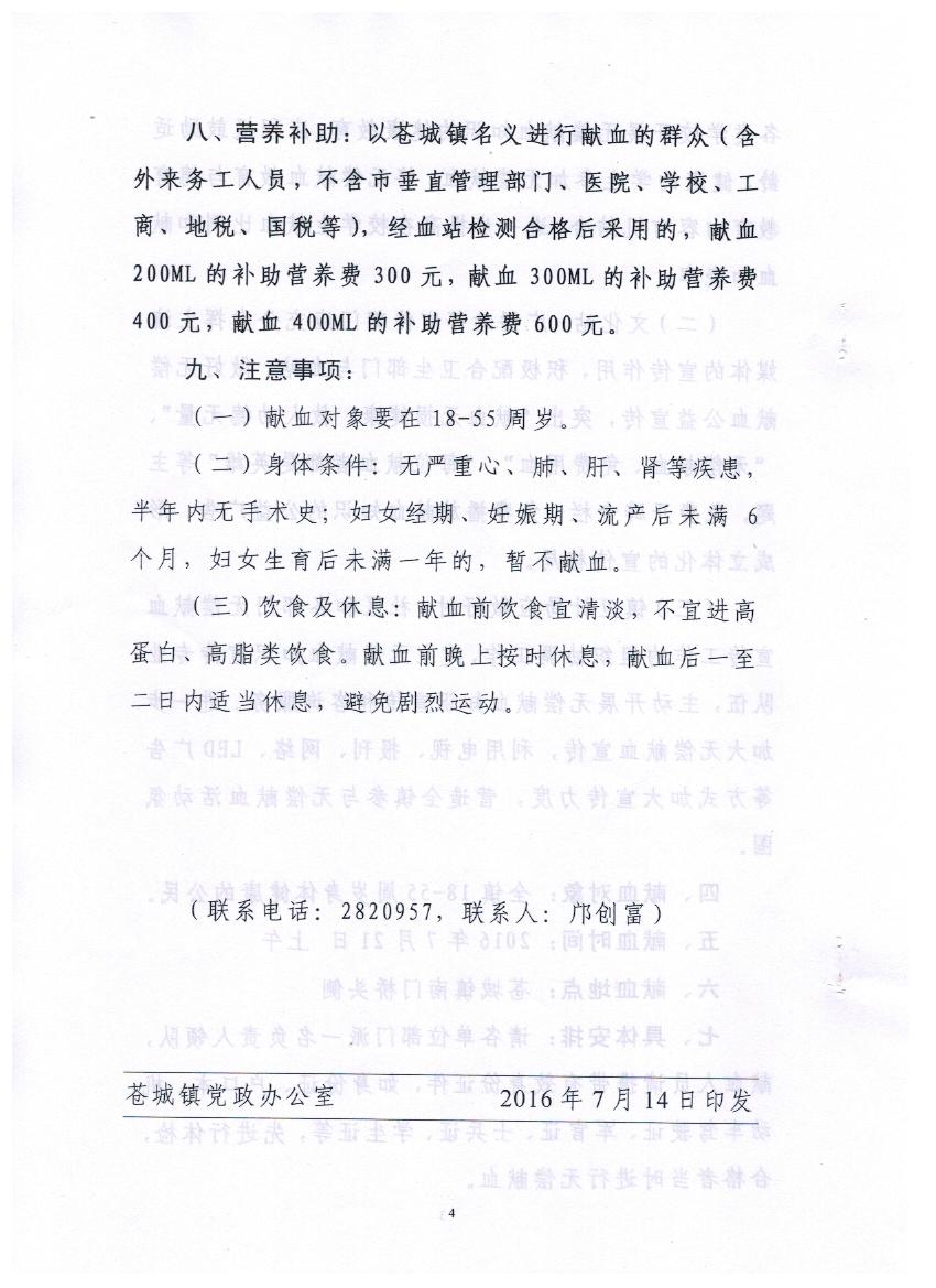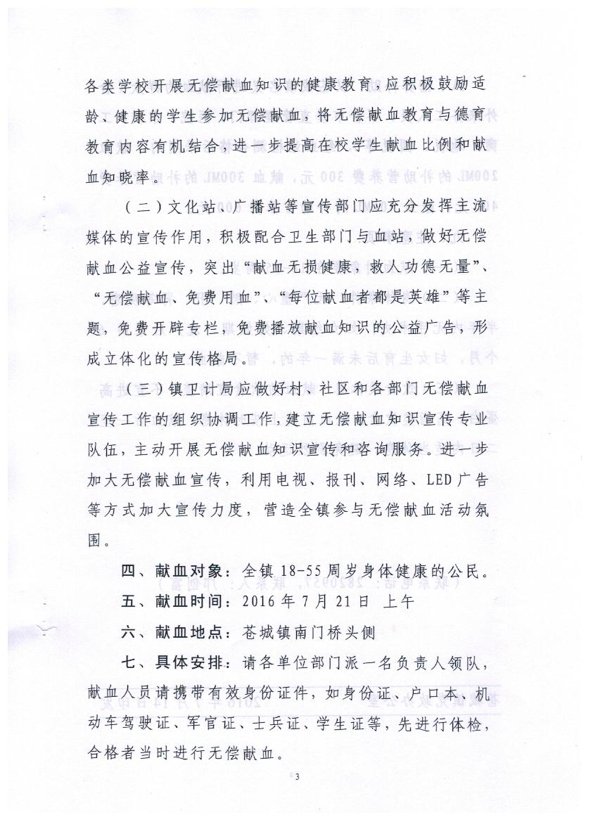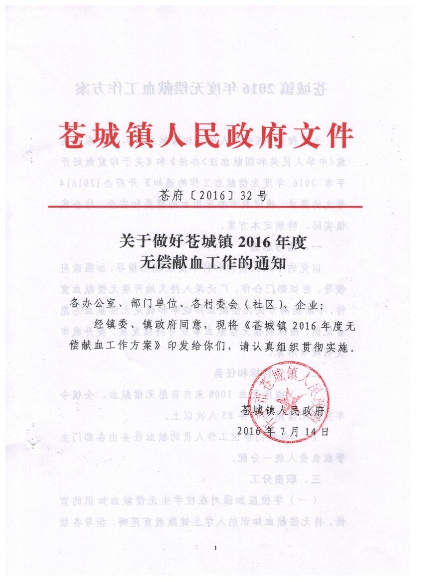 關于做好蒼城鎮(zhèn)2016年度無償獻血工作的通知