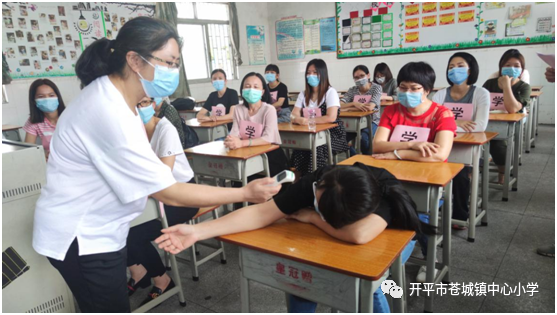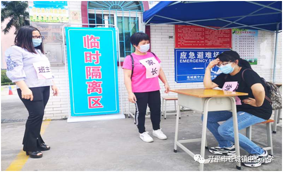 疫情就是命令,責(zé)任就是使命。開學(xué)在即,為規(guī)范學(xué)校疫情防控應(yīng)急處理工作流程,切實(shí)保障師生們的健康和生命安全, 全面提高學(xué)校的應(yīng)急反應(yīng)能力、綜合協(xié)調(diào)能力、應(yīng)急處置能力,做到早發(fā)現(xiàn)、早報(bào)告、早隔離、早診斷、早治療,促進(jìn)學(xué)校防控工作科學(xué)化、標(biāo)準(zhǔn)化、程序化,切實(shí)保障廣大師生身體健康,有效阻止新冠肺炎等傳染病的傳染源,讓學(xué)生安心、家長(zhǎng)放心、社會(huì)放心,確保學(xué)校復(fù)學(xué)工作有序開展。蒼城鎮(zhèn)中心小學(xué)主校區(qū)全體教職工于2020年4月30日下午,進(jìn)行了開學(xué)疫情防控演練暨防疫知識(shí)培訓(xùn)。演練模擬了:學(xué)生錯(cuò)峰返校、在校上課、午休、食堂就餐等相關(guān)場(chǎng)景,做好人員測(cè)溫、發(fā)現(xiàn)異常、隔離登記、分級(jí)上報(bào)、通知家長(zhǎng)、送醫(yī)治療、場(chǎng)所消毒等各項(xiàng)處置工作,把開學(xué)后的各個(gè)環(huán)節(jié)都做了細(xì)致的演練,做到校園疫情防控萬無一失,切實(shí)保障全校師生身體健康和生命安全。 檢測(cè)員對(duì)將要進(jìn)校園的“學(xué)生”的進(jìn)行體溫檢測(cè) “學(xué)生”的書包、手部進(jìn)行消毒 通知“家長(zhǎng)”到校外臨時(shí)隔離點(diǎn)接身體不適“學(xué)生” 上課老師正對(duì)堂上期間不適“學(xué)生”進(jìn)行體溫檢測(cè) 級(jí)組長(zhǎng)組織有身體不適班級(jí)的其他學(xué)生撤離到備用課室 保健員對(duì)患病“學(xué)生”的病情、病史進(jìn)行詳細(xì)了解 學(xué)生就餐前測(cè)體溫 學(xué)生在廚房同向隔位就餐 廚房管理員發(fā)現(xiàn)身體不適“學(xué)生”向?qū)W校防疫聯(lián)絡(luò)人匯報(bào) 疫情發(fā)生后組織學(xué)生有序撤離疏散 保健員對(duì)患病“學(xué)生”進(jìn)行水銀溫度計(jì)重測(cè)體溫 廚房工作人員在消毒處理學(xué)生嘔吐物 學(xué)校消毒員對(duì)患病學(xué)生途經(jīng)路線進(jìn)行消毒 防疫應(yīng)急演練邀請(qǐng)了我校的衛(wèi)生聯(lián)絡(luò)人蒼城鎮(zhèn)衛(wèi)生院劉興坤醫(yī)生全程參與。在演練中劉醫(yī)生為我們做專業(yè)知識(shí)指導(dǎo)。演練結(jié)束,在多媒體室,劉醫(yī)生先是對(duì)我校演練工作的重視作出肯定,還表揚(yáng)了我校老師在就餐前的七步洗手法做得標(biāo)準(zhǔn),達(dá)到消毒的效果。最后,劉醫(yī)生針對(duì)疫情進(jìn)行開學(xué)前、開學(xué)后的防控工作做專業(yè)知識(shí)培訓(xùn),重點(diǎn)指導(dǎo)了如何配制有效,不超量的消毒液等防疫措施。 全體教職工參與防疫知識(shí)培訓(xùn) 許校長(zhǎng)對(duì)演練進(jìn)行總結(jié) 本次防疫應(yīng)急演練暨防疫安全培訓(xùn),進(jìn)一步增強(qiáng)了我校防疫應(yīng)急方案的可操作性,我們要根據(jù)演練中發(fā)現(xiàn)的問題,及時(shí)完善改進(jìn),不斷提高應(yīng)急管理水平和應(yīng)急處置能力,進(jìn)一步夯實(shí)學(xué)校防疫陣地,為安全開學(xué)做足充分準(zhǔn)備。