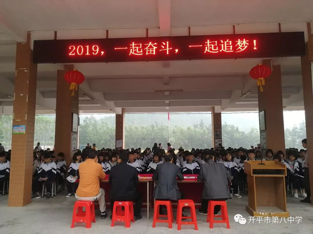 同學(xué)們!開學(xué)啦!濃濃春意驅(qū)散了冬季的寒冷,萬象更新孕育著新年的期望。度過了一個平安、愉快的寒假,開平市第八中學(xué)全體師生滿懷希望迎來了2019年春季新學(xué)期。 新學(xué)期!新起點!新希望! 2月18日早上8:00,學(xué)校召開了2019年春季學(xué)期開學(xué)典禮暨安全教育大會。團委組織了新學(xué)期第一次升旗,儀式莊嚴而隆重。梁順慶校長在致辭中向全體師生們送上新學(xué)期真摯祝福,他說,“風雨砥礪,碩果飄香”是我校上學(xué)期的真實寫照,在全校師生的共同努力下,克服各種困難,通過各項檢查,經(jīng)受各類考驗,成果顯著。同時也指出新學(xué)期是收獲的季節(jié),“咬定青山不放松,立根原在破巖中”是我們八中學(xué)子的學(xué)習精神。只要我們八中每個人都定下一個追趕目標,并持之以恒,咬定青山不放松,每個人目標實現(xiàn),整個學(xué)校的目標自然就實現(xiàn)了。 教師代表謝珍娣、學(xué)生李莎代表分別作了以《踏上新征程,展示新風采》、《一分耕耘,一分收獲》為內(nèi)容的發(fā)言,張偉良副校長宣讀了學(xué)校對上學(xué)期學(xué)習成績優(yōu)秀同學(xué)的表彰決定并進行了頒獎。 開學(xué)典禮上,蒼城交通中隊的陳指導(dǎo)員就了交通安全方面給同學(xué)們提出一些要求,希望同學(xué)們自覺遵守交通規(guī)則,做到“開開心心上學(xué)去,平平安安回家來”,并和民警給我校的同學(xué)發(fā)放交通安全宣傳資料。 第二節(jié)的班會課,各班充分利用安全教育平臺的視頻及課件,組織開展“交通安全”、“食品衛(wèi)生安全”、“春季傳染性疾病防控”、“禁毒宣傳教育”、“畢業(yè)生心理健康教育”等等為內(nèi)容的“開學(xué)第一課”的主題班會。 下午,開平市蒼城鎮(zhèn)主管教育的梁卓和副鎮(zhèn)長親自到學(xué)校來進行開學(xué)指導(dǎo),他向?qū)W校領(lǐng)導(dǎo)了解學(xué)校的開學(xué)工作情況,詢問學(xué)校本學(xué)期的工作規(guī)劃,并送上溫馨的祝福。蒼城派出所的梁培旺副所長和李儉存副所長也帶領(lǐng)民警到學(xué)校對學(xué)校開學(xué)安全保障工作進行指導(dǎo)。 開學(xué)第一天,開平八中的各項開學(xué)工作在各界的關(guān)懷和師生的共同努力下進行得井然有序。 “春風浩蕩蘇千卉,桃李芬芳育英才”,春天是播種的季節(jié),只有用辛勤的勞動播下希望的種子,才會有滿意的收獲,開平八中全體師生決心去創(chuàng)造屬于自己的每一天,去書寫新的篇章,創(chuàng)造新的輝煌!