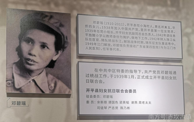 她就是鄧碧瑤(1910-2011年),原名鄧美玉,出身于開平赤坎鎮(zhèn)小海村的一個華僑家庭。雖然家庭富裕,但是不圖安逸的她投身革命跟黨走,于1938年加入中國共產(chǎn)黨,是開平第一位女共產(chǎn)黨員,她負責在當?shù)匕l(fā)動和組織婦女運動。