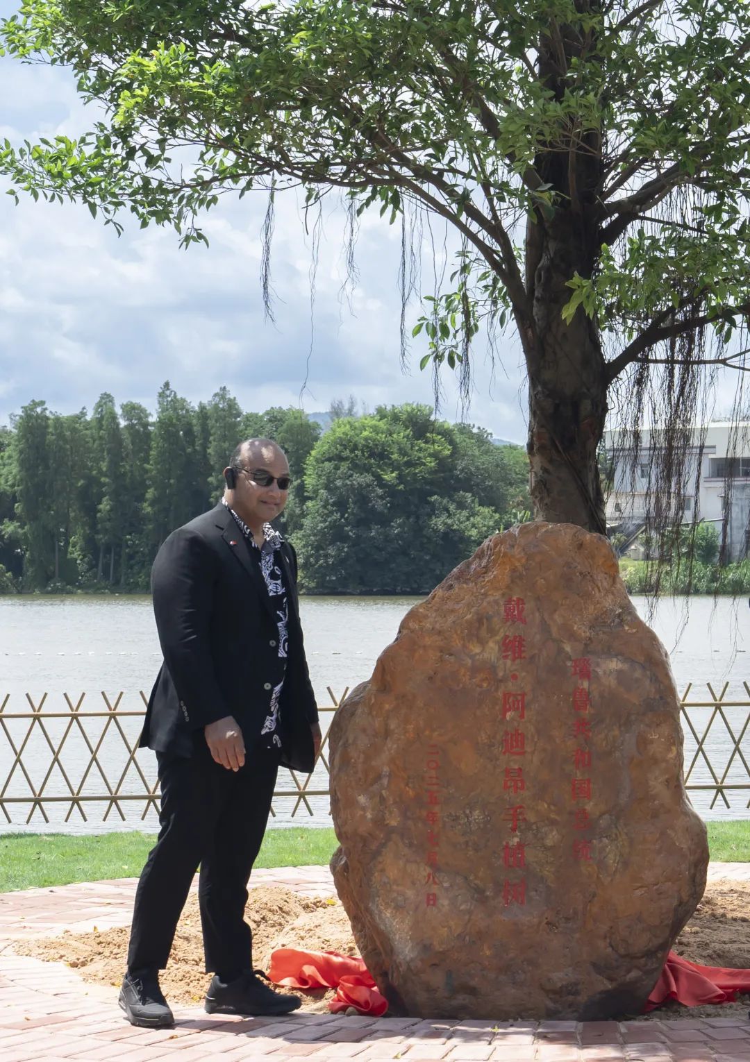 在素庵居廬旁,戴維·阿迪昂和隨行親屬一同揮鍬鏟土、培土澆水,種下一棵象征家族枝繁葉茂、人丁興旺的榕樹(shù)。他還收到了一份特殊的禮物——祖祠前的一抔泥土。