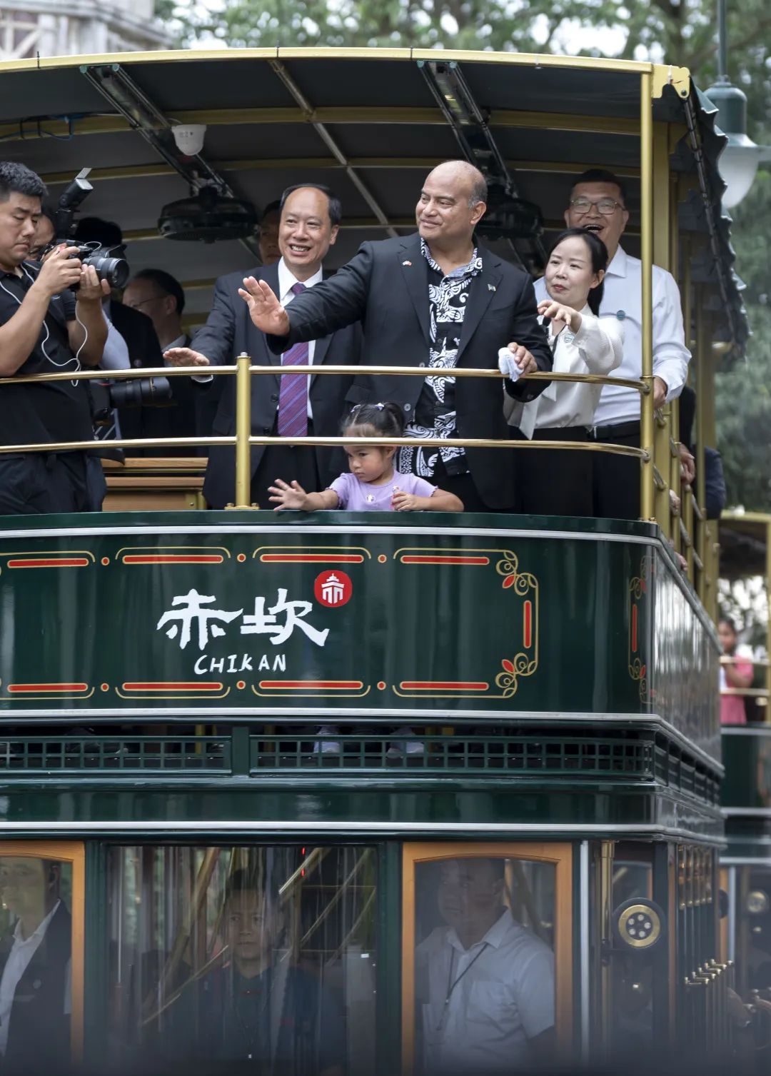 “我到訪過(guò)很多國(guó)家,但這次在中國(guó)的經(jīng)歷很不一樣,令我終生難忘?!?/span>7月8日,在擁有百年歷史的江門(mén)開(kāi)平市赤坎鎮(zhèn)司徒氏圖書(shū)館內(nèi),瑙魯總統(tǒng)戴維·阿迪昂輕輕翻開(kāi)族譜,激動(dòng)之情溢于言表。他在一本族譜扉頁(yè)上簽名,向圖書(shū)館贈(zèng)送以瑙魯?shù)貓D為主題的紀(jì)念品,還熱情地招呼家鄉(xiāng)親人合影留念。