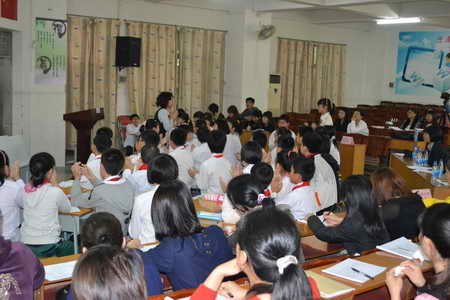 為加強(qiáng)學(xué)生思想道德教育,吸引和拉動(dòng)學(xué)校、家庭、社會(huì)成員共同參與道德建設(shè)。3月27日下午,長沙中心學(xué)校在譚宏帙紀(jì)念小學(xué)舉辦“道德講堂”觀摩活動(dòng)。長沙中心學(xué)校領(lǐng)導(dǎo),關(guān)工委老同志,長沙各學(xué)校政工領(lǐng)導(dǎo)和班主任代表,以及譚宏帙紀(jì)念小學(xué)全體班主任和部分學(xué)生共150多人參加這次觀摩活動(dòng)。 在觀摩活動(dòng)中,譚宏帙紀(jì)念小學(xué)結(jié)合本校德育科研課題《文明禮儀實(shí)踐教育》第二階段計(jì)劃,在各個(gè)年級(jí)推薦的優(yōu)秀課例中,確定由張錦芬老師主持“心存感恩,讓文明禮儀走進(jìn)家庭”為主題的“道德講堂”示范課。這次“道德講堂”還特別邀請(qǐng)長沙中心學(xué)校關(guān)工委兩位老同志作為宣讀員參與互動(dòng)。觀摩活動(dòng)氣氛熱烈,效果非常好,不少領(lǐng)導(dǎo)、師生感動(dòng)得流下熱淚。 通過這次觀摩活動(dòng),長沙街道各中小學(xué)將以點(diǎn)帶面,陸續(xù)開展“道德講堂”建設(shè),定期進(jìn)行宣講活動(dòng),扎實(shí)推進(jìn)社會(huì)主義核心價(jià)值體系建設(shè),吸引和帶動(dòng)學(xué)校、家庭和社會(huì)成員共同參與道德建設(shè),不斷提升廣大師生和學(xué)生家長的道德思想道德修養(yǎng),推動(dòng)文明城市創(chuàng)建工作。