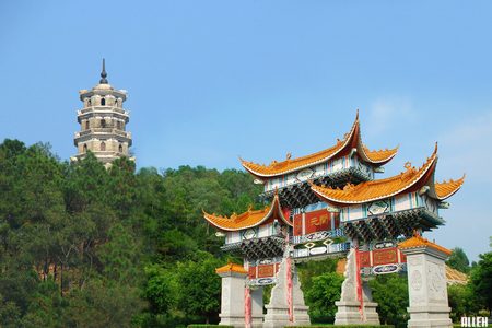 開元塔,是開平市長(zhǎng)沙街道的一個(gè)著名文化旅游景點(diǎn)。1999年,開平市委、市政府將其納入建設(shè)“文明僑鄉(xiāng),花園城市”的總體規(guī)劃。多年來(lái),經(jīng)過(guò)開平市領(lǐng)導(dǎo)和一大批華僑華人同胞的努力,通過(guò)政府劃撥巨款和僑胞捐贈(zèng)巨資,先后投入700多萬(wàn)元,對(duì)這兩座文物建筑進(jìn)行了修葺和整固,令其煥然一新,又在金章閣內(nèi)增設(shè)了孔子大型銅塑像,還在馬山興建了園林、入口牌樓、上山石級(jí)、風(fēng)亭、碑廊、名人廊、綠化區(qū)、停車場(chǎng)等旅游景觀和設(shè)施,建成了一座占地2萬(wàn)平方米的嶄新的開元塔紀(jì)念公園,使其成為了開平花園城市的又一個(gè)集紀(jì)念、游樂(lè)為一體的風(fēng)光名勝旅游景點(diǎn)。 歷史開元 開元塔,位于長(zhǎng)沙樓岡馬山。開元塔高7層,占地面積49.1平方米,始建于清乾隆16年(1751年),原名“文塥”塔。據(jù)《開平縣志》載,乾隆十六年(1751年),四川省南溪縣舉人葉秀重到開平任知縣。葉認(rèn)為馬山是開平的門戶,倡議在山頂上建一座5層高的“文筆”,以振興開平的人才?!拔墓P”建成后不久,開平果然出了10多個(gè)舉人。 文筆塔建成后,開平科舉小有嶄獲,但仍無(wú)大的建樹。據(jù)民間傳說(shuō),1843年,縣令張幫泰(江西吉水人)認(rèn)為開平之所以未出名人,主要是文筆塔太矮。因此,張縣令召集工匠將“文筆”加高兩層,使之與蒼城學(xué)宮的地階相齊,構(gòu)成鳳凰展翅飛天之勢(shì)。據(jù)縣志記載,張縣令還將文筆塔底層封閉,并規(guī)定:不出狀元就不能開塔底的門。文筆塔擴(kuò)建期間,已經(jīng)苦讀十年寒窗的開平赤坎聯(lián)塘東溪村人司徒煦于道光癸卯科年間欽點(diǎn)傳臚翰林院庶吉士(即殿試第四名),為開平的科舉史開創(chuàng)了新局面,因此“文筆”便改名為開元塔。但由于開平始終沒(méi)有出過(guò)狀元,故該塔塔門一直不曾開啟,封閉至今。塔里面有沒(méi)有藏東西?藏了些什么?則成了一個(gè)謎。 1946年,樓岡人吳尚志任開平縣長(zhǎng),倡議重修開元塔和金章閣,使其恢復(fù)舊觀。這一倡議,得到當(dāng)?shù)厝藗兊闹С趾秃M鈨S胞的囊助,終于把它修復(fù)。但又經(jīng)歷了數(shù)十多個(gè)春秋,一次雷雨大作,塔頂?shù)乃x“銅葫蘆”被失落而散失。1984年文物普查時(shí),得知被雷電擊落的塔頂“銅葫蘆”為當(dāng)?shù)厝罕娛盎厥詹兀阏骷乜h保管(現(xiàn)藏于縣華僑博物館)希望有朝一日重修此塔時(shí),持“銅葫蘆”重置塔頂,使其重展當(dāng)年的雄姿。1999年,開平市委、市政府已將其納入建設(shè)“文明僑鄉(xiāng),花園城市”的總體規(guī)劃,定為重點(diǎn)建設(shè)的10項(xiàng)“民心工程”之一。經(jīng)過(guò)開平市領(lǐng)導(dǎo)和吳榮治先生、譚錦濠先生等一大批華僑華人同胞的努力,通過(guò)政府劃撥巨款和華僑華人同胞捐贈(zèng)巨資,先后投入700多萬(wàn)元,對(duì)這兩座文物建筑進(jìn)行了修葺和整固,令其煥然一新,又在金章閣內(nèi)增設(shè)了孔子大型銅塑像,還在馬山興建了園林、入口牌樓、上山石級(jí)、風(fēng)亭、碑廊、名人廊、綠化區(qū)、停車場(chǎng)等旅游景觀和設(shè)施,建成了一座占地2萬(wàn)平方米的嶄新的開元塔紀(jì)念公園,使其成為了開平花園城市的又一個(gè)集紀(jì)念、游樂(lè)為一體的風(fēng)光名勝旅游景點(diǎn)。 如今,開元塔和金章閣巍然屹立在馬山之巔,“圣人”孔子的金身塑像坐立殿堂之中,面對(duì)川流奔騰不息的蒼江。紀(jì)念公園游人如鯽,不僅成為市民和外地游客瞻仰“南國(guó)古邑”風(fēng)貌的著名觀光景點(diǎn),而且成為了激勵(lì)僑鄉(xiāng)民眾和游人奮發(fā)拼搏,不斷開啟科學(xué)文化知識(shí)大門,攀登世界先進(jìn)文化高峰的力量之源!