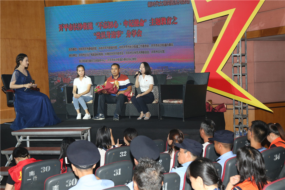 9月5日晚上,長(zhǎng)沙街道“不忘初心、牢記使命”主題教育之“黨員身邊事”分享會(huì)在市人民會(huì)堂舉行,宣傳推廣一批先進(jìn)典型,大力弘揚(yáng)社會(huì)正能量。開(kāi)平市領(lǐng)導(dǎo)龐正華、陳軍凱、顏海娜、李寶貞、黃力奔出席晚會(huì)。 市委副書(shū)記、組織部部長(zhǎng)、政法委書(shū)記陳軍凱在致辭中肯定了長(zhǎng)沙街道黨工委創(chuàng)新提出以“黨員身邊事”為抓手,通過(guò)“實(shí)在事、帶動(dòng)人、成氛圍”,唱響“黨建引領(lǐng)揚(yáng)正氣、黨員帶動(dòng)聚正能”黨建主旋律等工作。他希望與會(huì)人員以參加這次分享會(huì)為契機(jī),更好地從“黨員身邊事”和先鋒模范人物身上汲取力量,將身邊的正能量轉(zhuǎn)化成不懈前進(jìn)的動(dòng)力。同時(shí),也希望全市廣大干部群眾從思想上、行動(dòng)上更加自覺(jué)地學(xué)習(xí)先進(jìn)、追趕先進(jìn)、爭(zhēng)當(dāng)先進(jìn),立足崗位、不忘初心、逐夢(mèng)前行,全力搶抓粵港澳大灣區(qū)發(fā)展機(jī)遇,積極參與創(chuàng)建全國(guó)文明城市,為開(kāi)平經(jīng)濟(jì)社會(huì)加快發(fā)展作出新的更大貢獻(xiàn)。 在“黨員身邊事”分享會(huì)前,出席晚會(huì)的領(lǐng)導(dǎo)先后向獲得2019年長(zhǎng)沙街道“十佳教師”、開(kāi)平市2019年度第一季度、第二季度“開(kāi)平好人”、“江門(mén)市優(yōu)秀共產(chǎn)黨員、優(yōu)秀黨務(wù)工作者、先進(jìn)基層黨組織”等榮譽(yù)稱(chēng)號(hào)的個(gè)人、組織頒獎(jiǎng),對(duì)他們?yōu)槿薪?jīng)濟(jì)社會(huì)和各項(xiàng)事業(yè)的發(fā)展作出積極貢獻(xiàn)表示感謝。 隨后,分享會(huì)通過(guò)“讓身邊人說(shuō)身邊事,用身邊事帶身邊人”的方式,以觀看視頻、與主持人互動(dòng)等形式,讓與會(huì)人員聆聽(tīng)、了解長(zhǎng)沙街道10件“黨員身邊事”,生動(dòng)詮釋和真實(shí)傳遞了社會(huì)正能量。 開(kāi)平市委書(shū)記龐正華和長(zhǎng)沙街道黨工委負(fù)責(zé)人共同為他們頒獎(jiǎng)。 分享會(huì)上,還穿插了具有本土特色文化的歌、舞等表演,寓意全市上下,干群同心,努力譜寫(xiě)僑鄉(xiāng)建設(shè)新篇章。