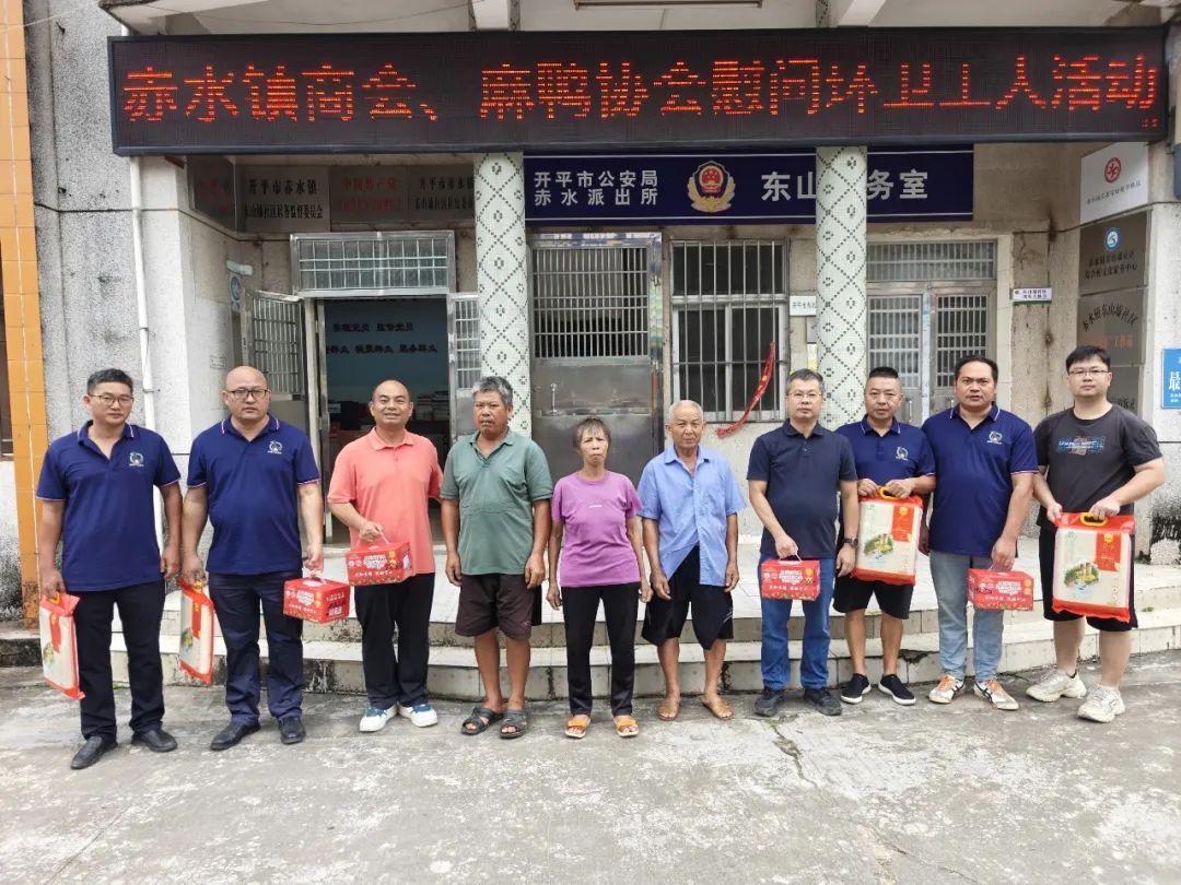 持續(xù)高溫給環(huán)衛(wèi)工作帶來嚴(yán)峻“烤”驗(yàn),8月14日上午,赤水鎮(zhèn)聯(lián)合鎮(zhèn)商會、開平市麻鴨產(chǎn)業(yè)協(xié)會開展“送清涼”慰問活動,向全鎮(zhèn)20余名一線環(huán)衛(wèi)工人贈送“赤水優(yōu)品”禮包(含山楂醋、大米等物資)。黃大勇、張曉冉以及麻鴨產(chǎn)業(yè)協(xié)會會長、商會代表樊勁松等參加慰問。