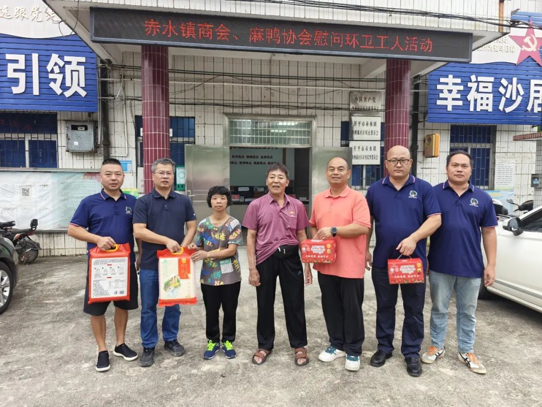 持續(xù)高溫給環(huán)衛(wèi)工作帶來嚴(yán)峻“烤”驗,8月14日上午,赤水鎮(zhèn)聯(lián)合鎮(zhèn)商會、開平市麻鴨產(chǎn)業(yè)協(xié)會開展“送清涼”慰問活動,向全鎮(zhèn)20余名一線環(huán)衛(wèi)工人贈送“赤水優(yōu)品”禮包(含山楂醋、大米等物資)。黃大勇、張曉冉以及麻鴨產(chǎn)業(yè)協(xié)會會長、商會代表樊勁松等參加慰問。
