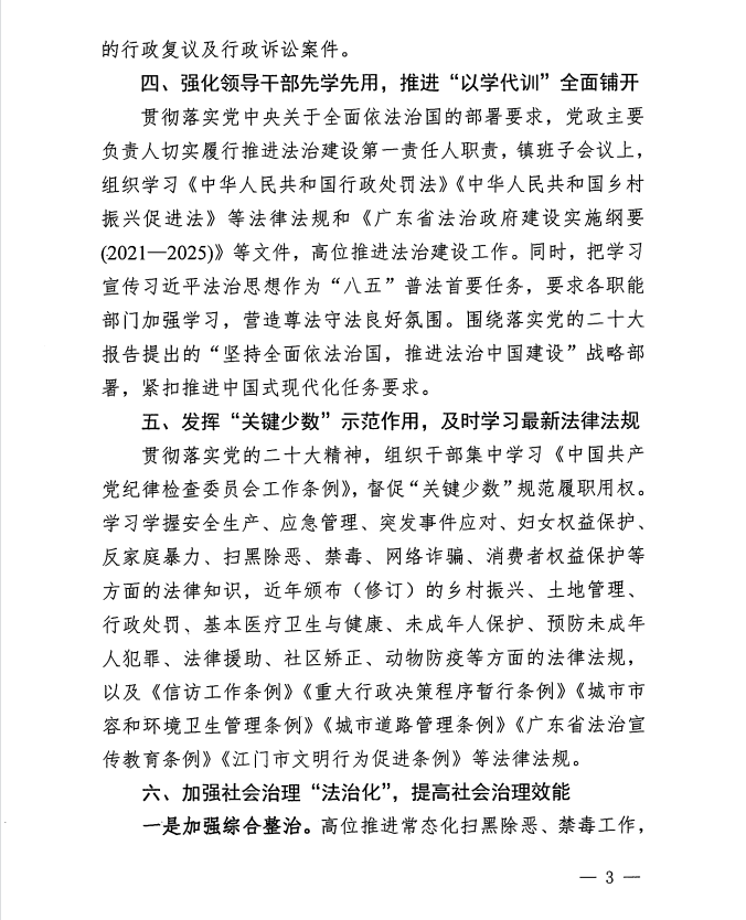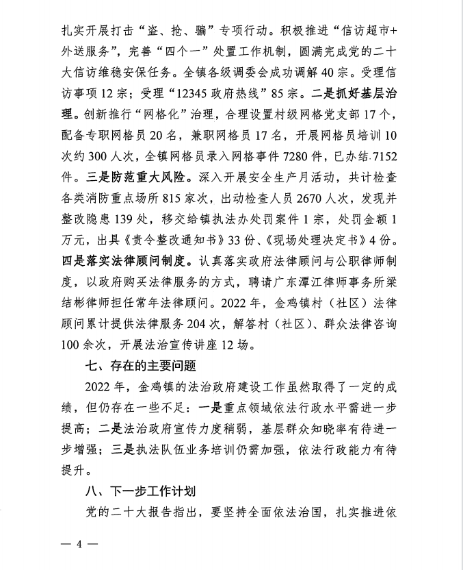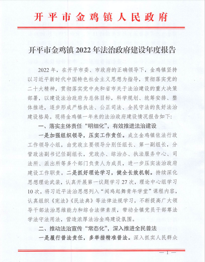 開平市金雞鎮(zhèn)2022年法治政府建設(shè)年度報告