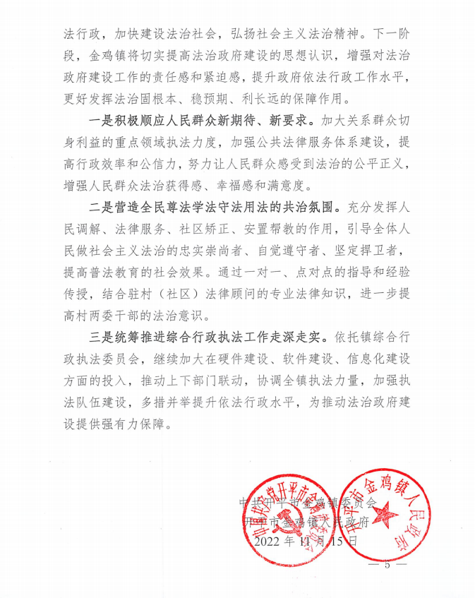 開平市金雞鎮(zhèn)2022年法治政府建設(shè)年度報告