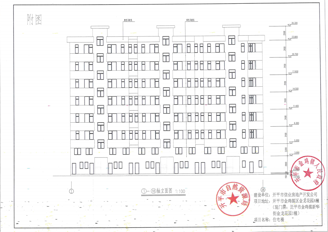 關(guān)于開平市金雞鎮(zhèn)區(qū)金龍花園 A、B幢住宅樓建筑設(shè)計方案和圖紙的公示