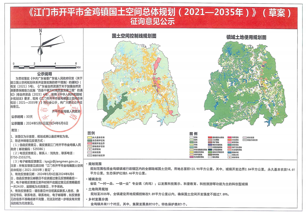 《江門市開平市金雞鎮(zhèn)國(guó)土空間總體規(guī)劃(2021-2035年)》(草案)征詢意見公示
