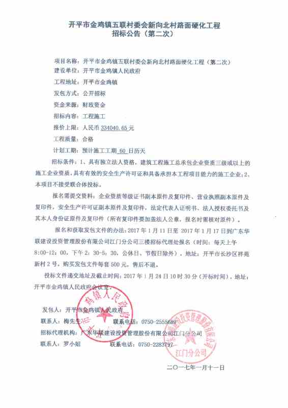 開平市金雞鎮(zhèn)五聯(lián)村委會(huì)新向北村路面硬化工程(第二次)