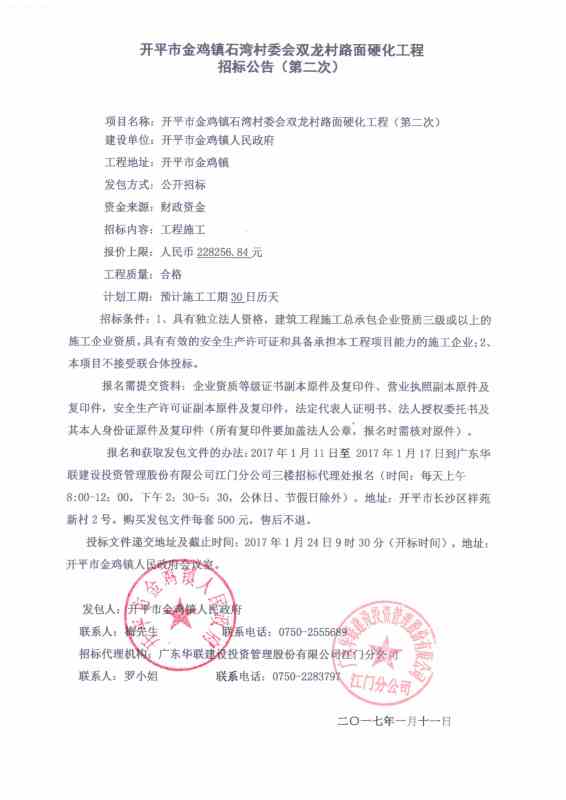開平市金雞鎮(zhèn)石灣村委會雙龍村路面硬化工程(第二次)