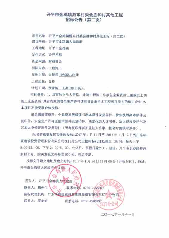 開平市金雞鎮(zhèn)游東村委會勝和村其它工程(第二次)