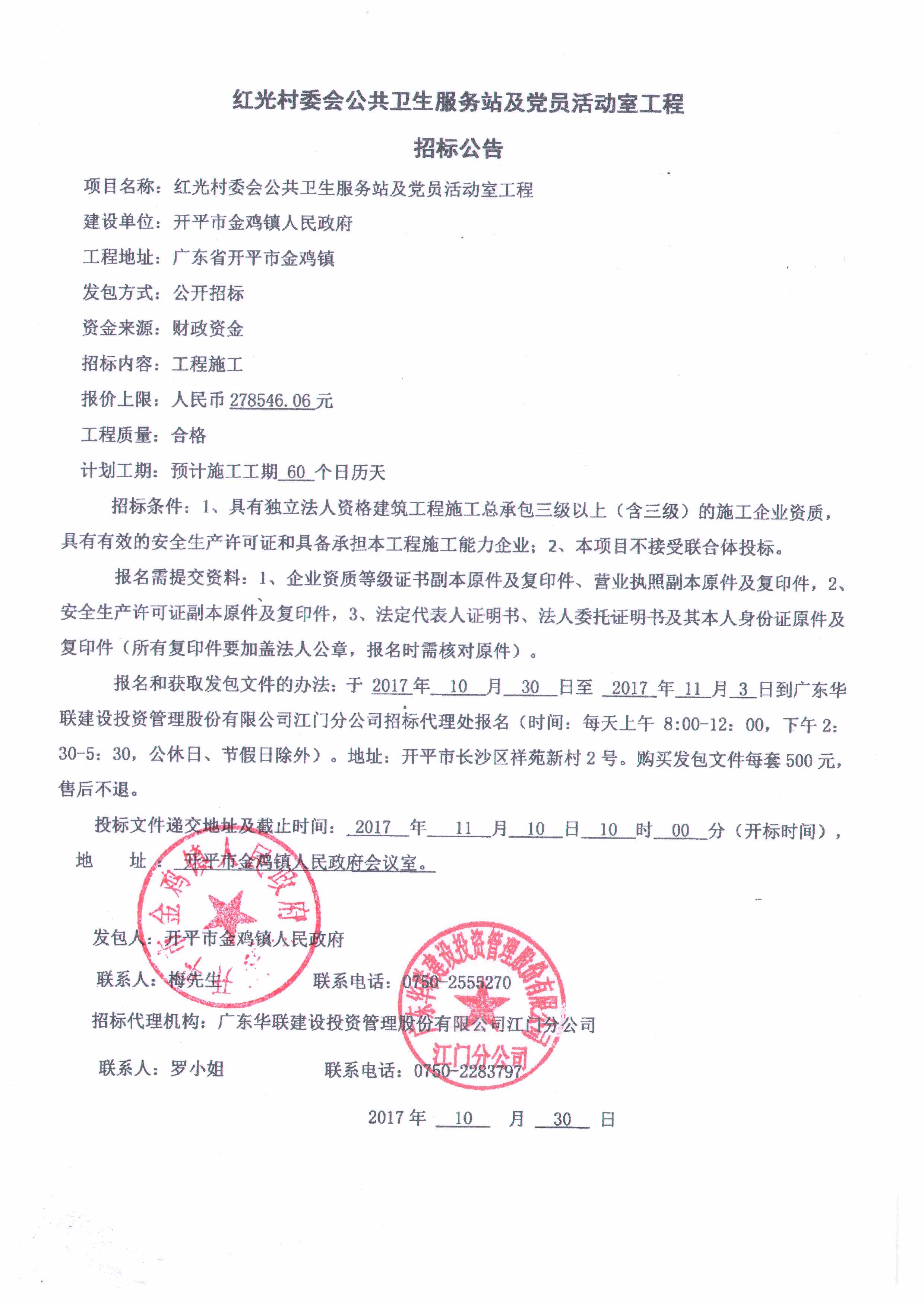 紅光村委會公共衛(wèi)生服務(wù)站及黨員活動室工程招標(biāo)公告