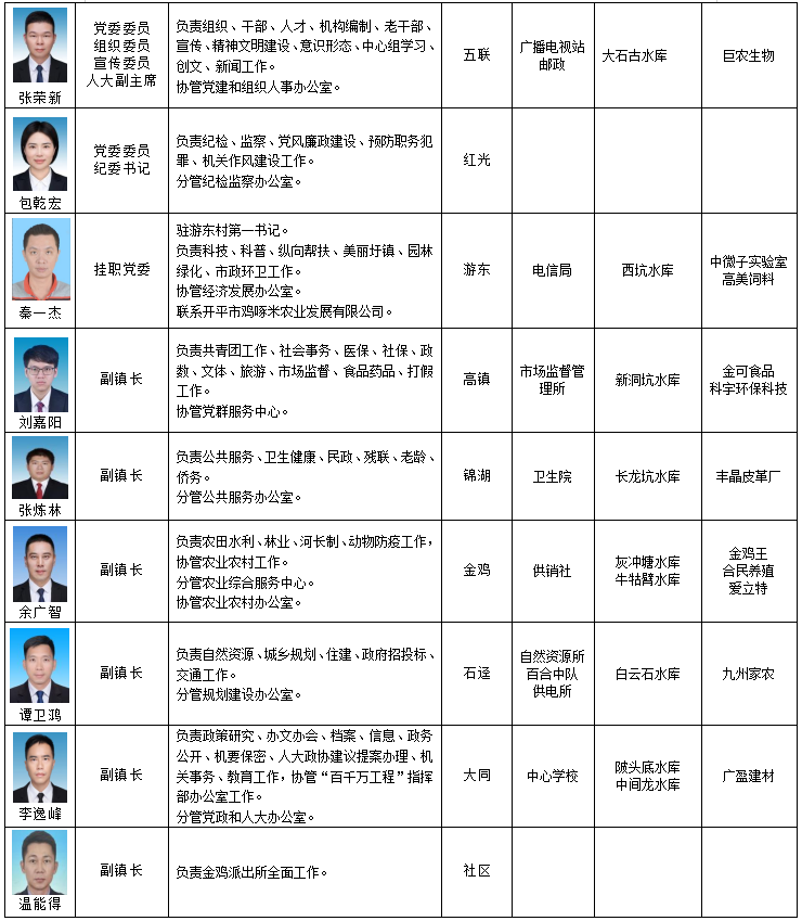 金雞鎮(zhèn)領(lǐng)導(dǎo)班子成員分工(2025年1月更新)