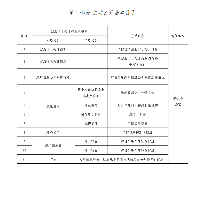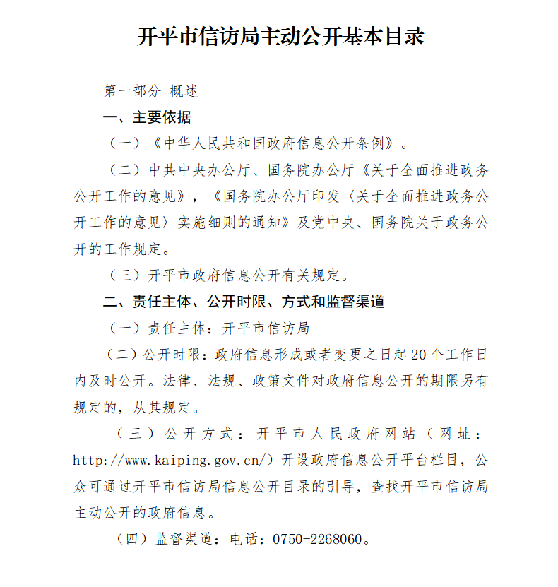 開平市信訪局主動公開基本目錄