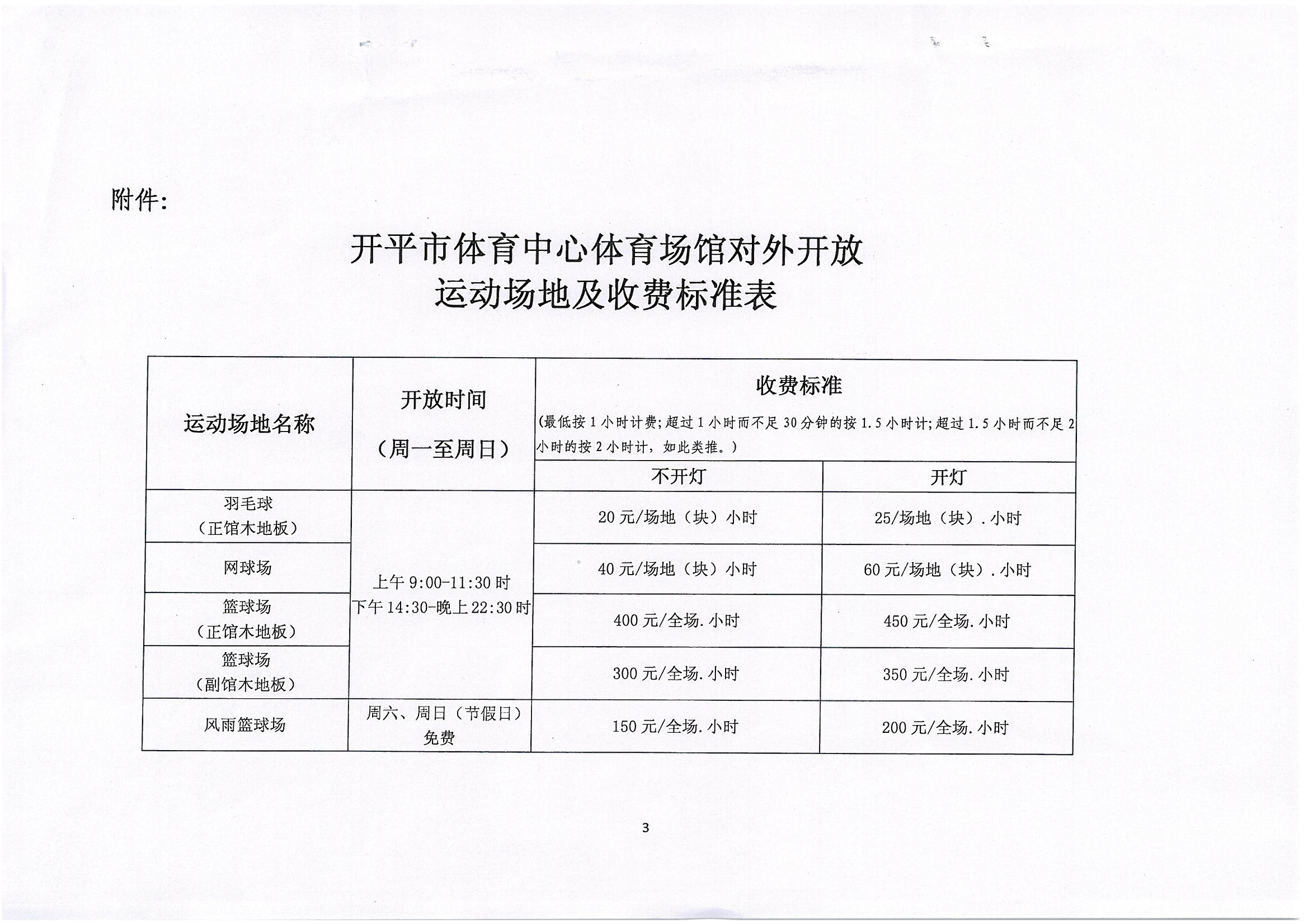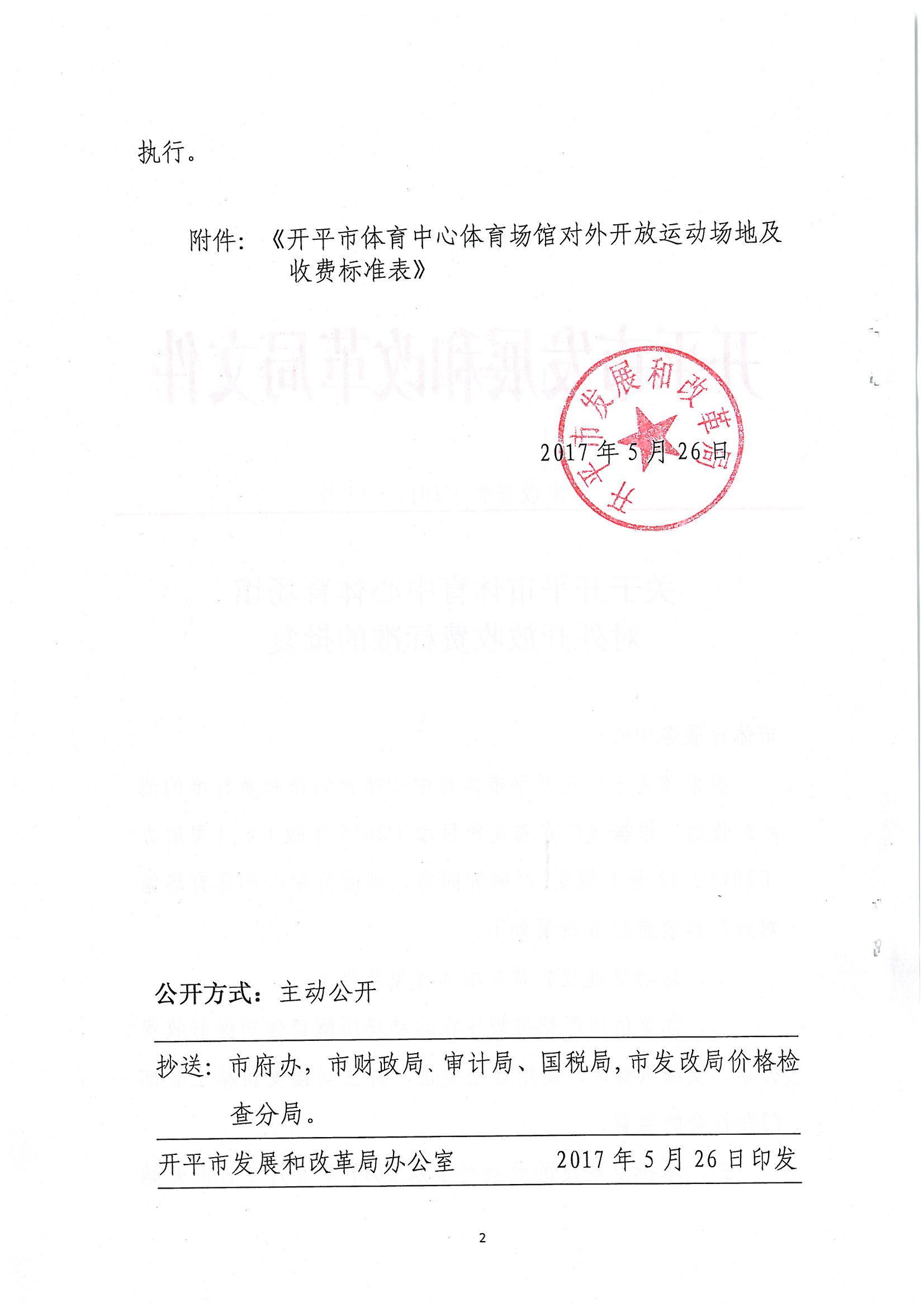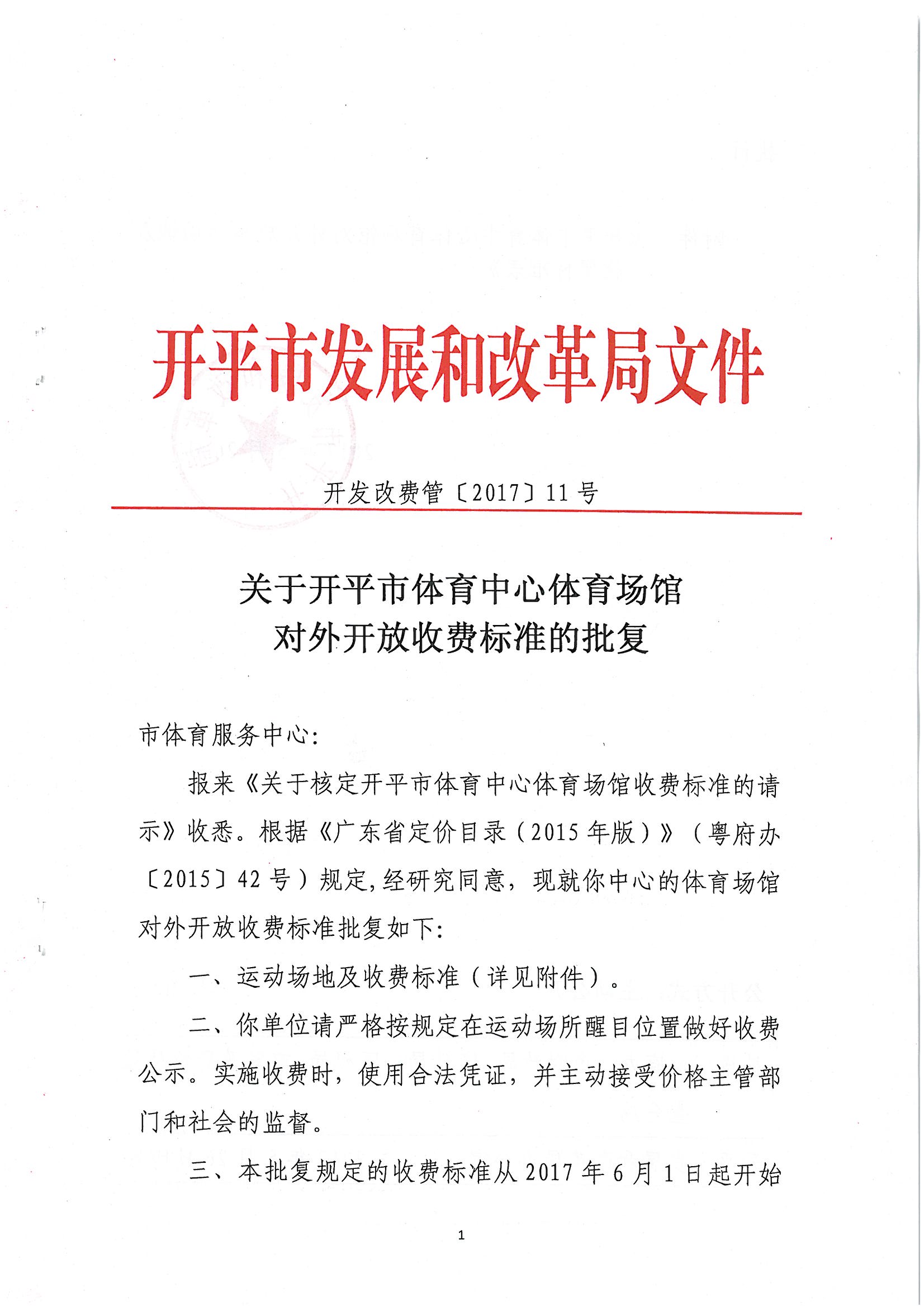 開發(fā)改費(fèi)管〔2017〕11號(hào) 關(guān)于開平市體育中心體育場館對外開放收費(fèi)標(biāo)準(zhǔn)的批復(fù)