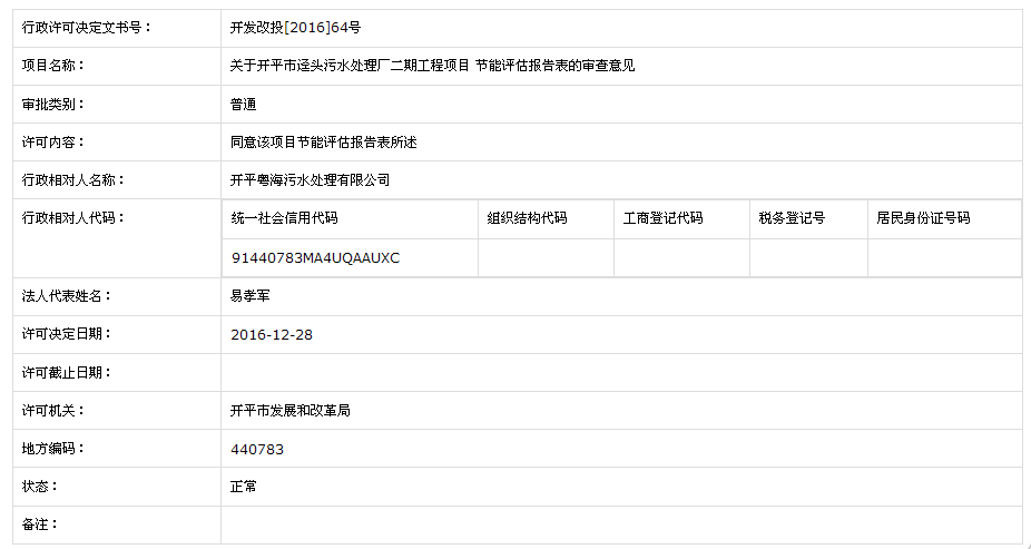 關(guān)于開(kāi)平市逕頭污水處理廠二期工程項(xiàng)目 節(jié)能評(píng)估報(bào)告表的審查意見(jiàn)