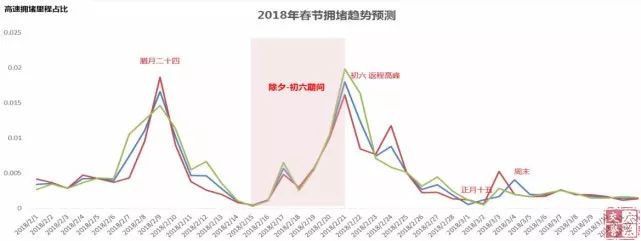年初六回程客流疊加,達到長途客流最高峰(擁堵里程占比是平日的近10倍)