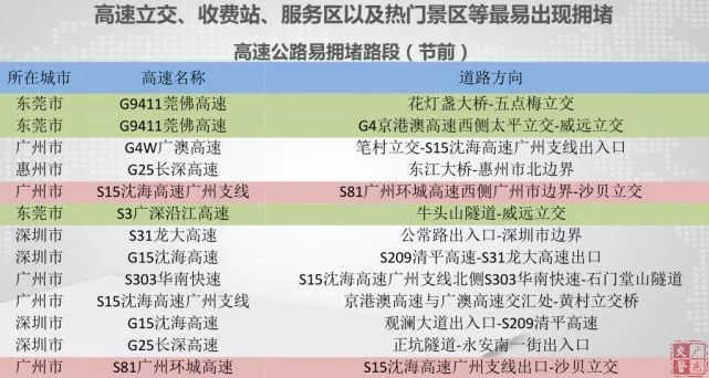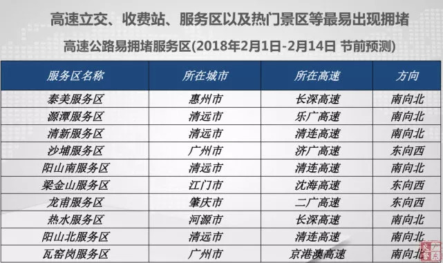 春運擁堵點段預測情況