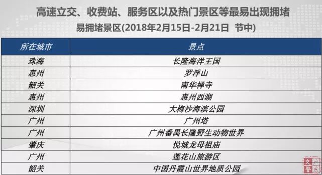 1月22日,廣東省公安廳交通管理局召開2018年春運道路交通安全管理工作媒體見面會,會上公布了春運期間一批高速易堵點段、易堵服務區(qū)、收費站以及一批熱門景點,提醒廣大出行者做好出行規(guī)劃,并通過廣大新聞媒體及廣東交警的微博微信等平臺留意最新的出行指引信息。
