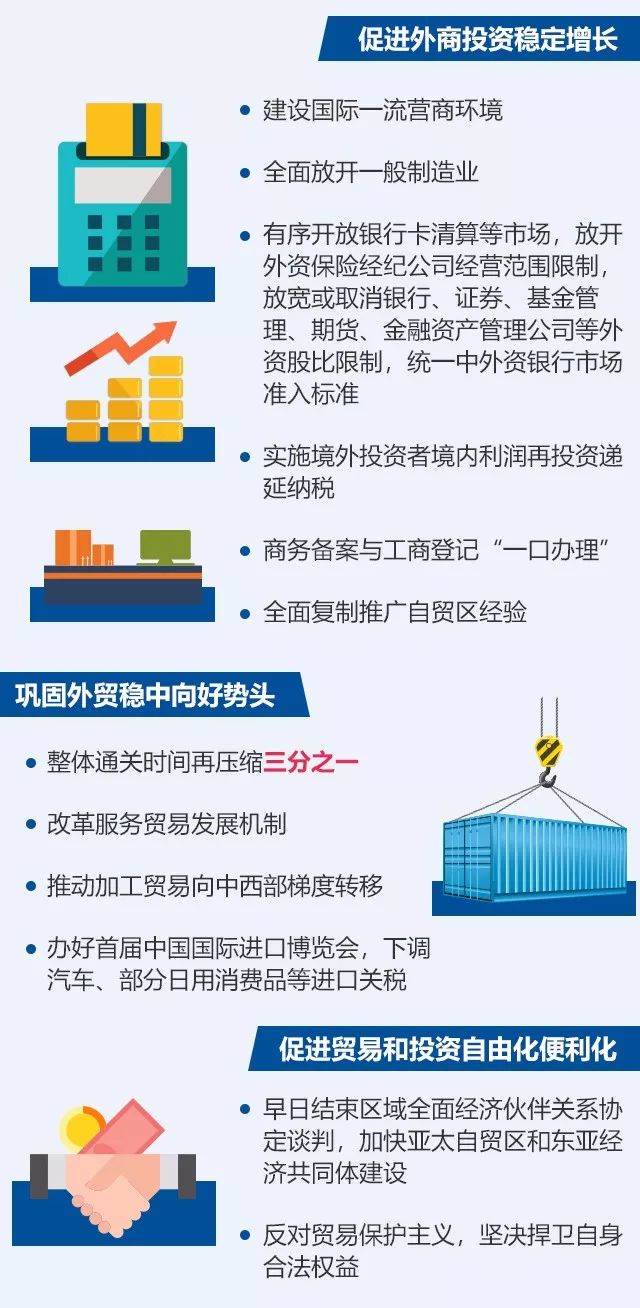 開放:放寬或取消銀行、證券、基金管理、期貨、金融資產(chǎn)管理公司等外資股比限制。探索建設(shè)自由貿(mào)易港。