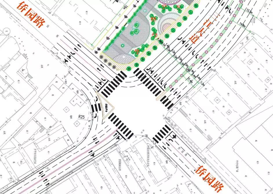 4、 西往東:開僑中學(xué)往僑園路方向三車道,左側(cè)為左轉(zhuǎn)道,中間為左轉(zhuǎn)和直行合并車道,右側(cè)為右轉(zhuǎn)車道,請按車道及信號燈通行;