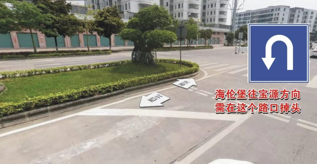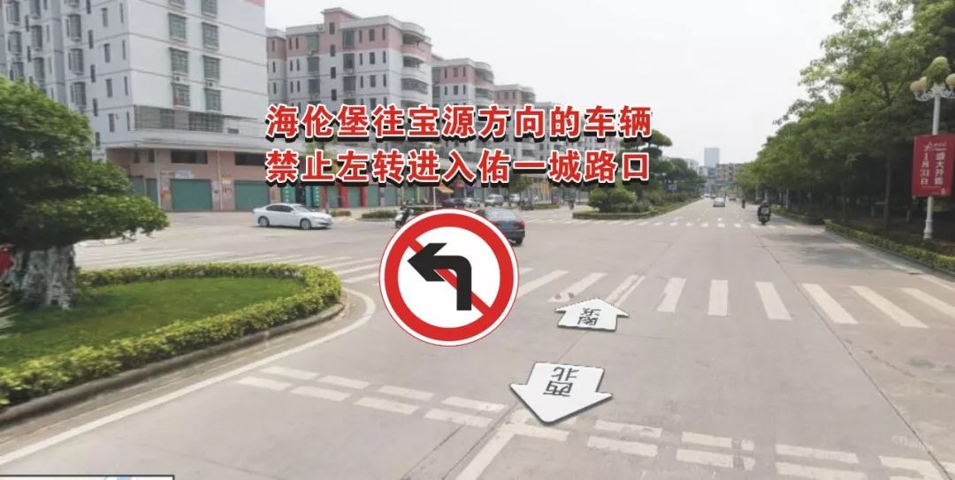 注意:①海倫堡往寶源方向的車輛禁止左轉(zhuǎn)進入佑一城路口,需要往寶源方向的車輛請在下一路口掉頭