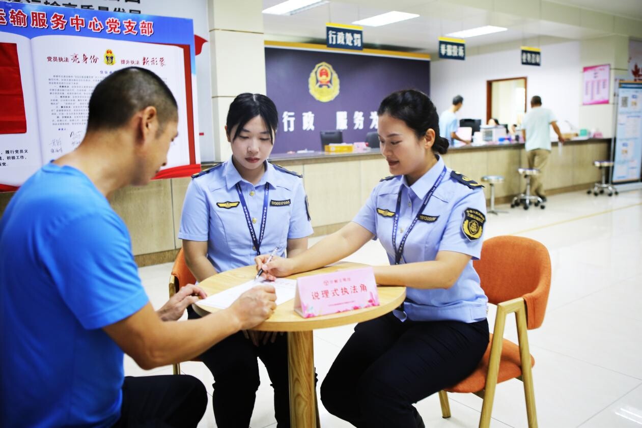 一是堅持剛?cè)岵?,為交通?zhí)法注入“巾幗柔”。女子執(zhí)法隊結(jié)合專項整治,貫徹包容審慎精神,持續(xù)推行行政執(zhí)法減免責(zé)制度,“量身定制”出符合地方特點的柔性執(zhí)法事項清單,不斷完善“雙免”清單,并對清單實施動態(tài)管理。全面梳理行政處罰首違不罰事項27項、輕微免罰事項2項、免強制事項2項,并簡化免罰手續(xù)。女子執(zhí)法隊通過駐行政服務(wù)中心窗口,直接向群眾普法釋法,行政相對人當(dāng)場簽署告知承諾書,上傳系統(tǒng)辦結(jié)案件,案件辦結(jié)后直接辦理年審手續(xù)。減少市民群眾的跑動次數(shù),實現(xiàn)“一次辦”、“窗口辦”,使政務(wù)服務(wù)更高效、便捷。2023年以來,市交通運輸局共作出首違不罰及輕微免罰148宗,同比增長471%,進一步減輕市場主體經(jīng)營壓力,優(yōu)化營商環(huán)境,促進行業(yè)發(fā)展。