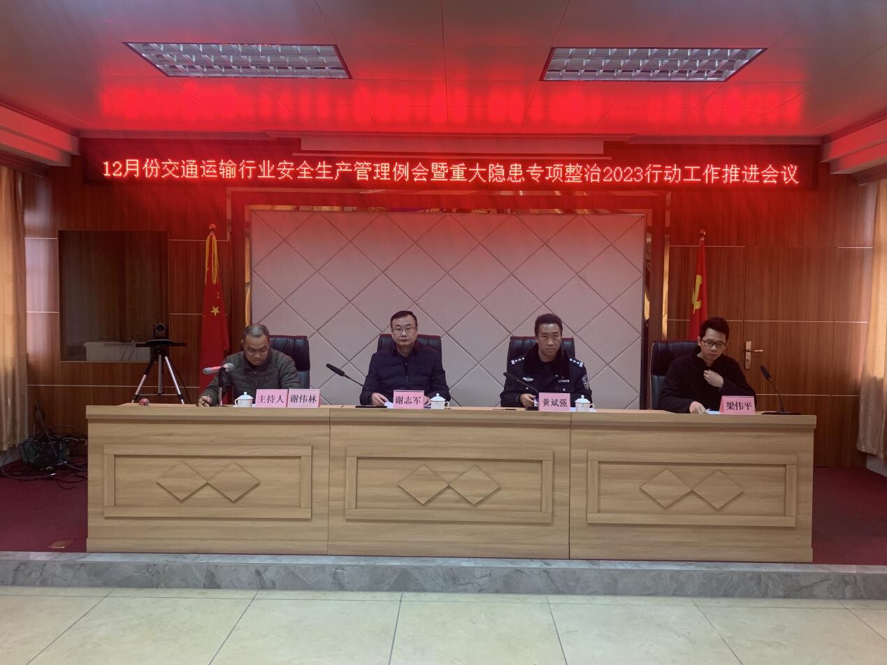 為貫徹落實省、市有關(guān)安全生產(chǎn)和消防安全、道路交通安全工作的部署要求,進(jìn)一步統(tǒng)籌推進(jìn)我市交通運(yùn)輸行業(yè)“奮戰(zhàn)六十天 全年保平安”安全生產(chǎn)攻堅行動、重大事故隱患排查整治和重大風(fēng)險防范化解2023行動工作,確保2023年度全市交通運(yùn)輸行業(yè)安全生產(chǎn)形勢持續(xù)穩(wěn)定,12月21日下午,我局召開12月份交通運(yùn)輸行業(yè)安全生產(chǎn)管理例會暨重大隱患專項整治2023行動工作推進(jìn)會議。市交通運(yùn)輸局謝志軍副局長、謝偉林三級主辦,責(zé)任股室、執(zhí)法大隊、直屬單位和市交警大隊以及客運(yùn)站場、客運(yùn)公司、危運(yùn)企業(yè)、貨運(yùn)企業(yè)負(fù)責(zé)同志等共約40人參會。