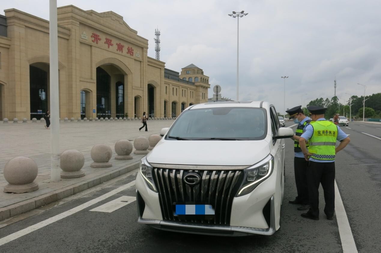 (執(zhí)法人員到開平南站嚴(yán)查非法營(yíng)運(yùn)、網(wǎng)約車無(wú)證運(yùn)輸?shù)冗`法行為)