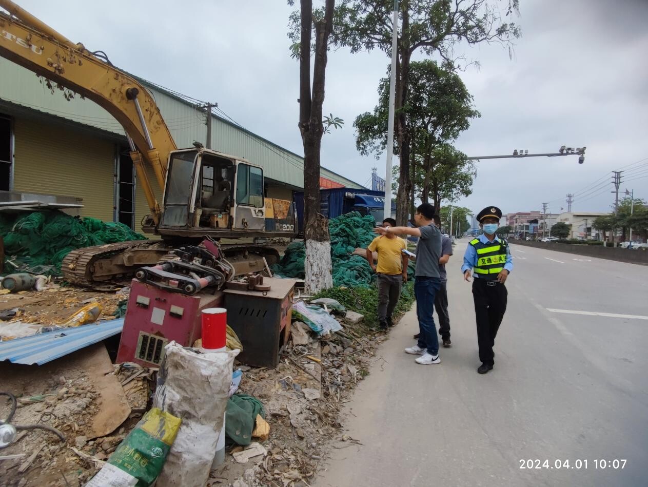 (執(zhí)法人員在S385線對(duì)在路肩處擺放廢品垃圾進(jìn)行整治)
