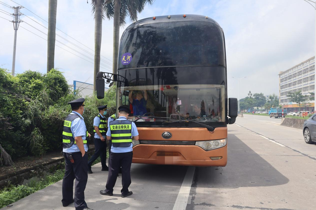 5月底,開平市交通執(zhí)法三大隊(duì)利用重點(diǎn)車輛稽查布控系統(tǒng)在沙塘高速出入口對(duì)線索車輛進(jìn)行布控,其間查獲一輛車牌號(hào)碼為桂E*****的線索車輛,車輛司機(jī)無法提供道路運(yùn)輸證及其他有效證件。經(jīng)核查,該車為大型臥鋪客車,搭載38名乘客從深圳市前往湛江市,每人支付司機(jī)130元車費(fèi)。該車司機(jī)涉嫌未取得道路客運(yùn)經(jīng)營許可擅自從事道路客運(yùn)經(jīng)營活動(dòng),執(zhí)法人員依法調(diào)查取證,目前案件正在進(jìn)一步調(diào)查處理中。