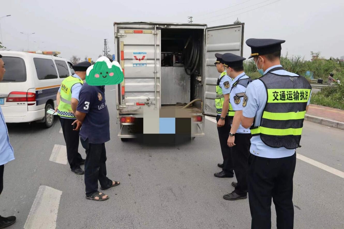 近期,開平市交通運輸局執(zhí)法人員在環(huán)城公路巡查時發(fā)現(xiàn)一輛輕型廂式貨車形跡可疑,隨即上前對其檢查。經(jīng)檢查,發(fā)現(xiàn)粵J*****輕型廂式貨車的車廂內(nèi)加裝了加油槍、計量設(shè)備及固定式大型儲油罐一個,儲油罐內(nèi)有柴油500升左右。由于該車司機司徒某某現(xiàn)場不能提供粵J*****輕型廂式貨車的危險貨物道路運輸證及其它有效證明,執(zhí)法人員依法現(xiàn)場暫扣該車輛。目前,交通執(zhí)法人員已積極協(xié)同涉案當(dāng)事人對剩余柴油進行安全轉(zhuǎn)運,后續(xù)案件的處理工作在進一步辦理中。