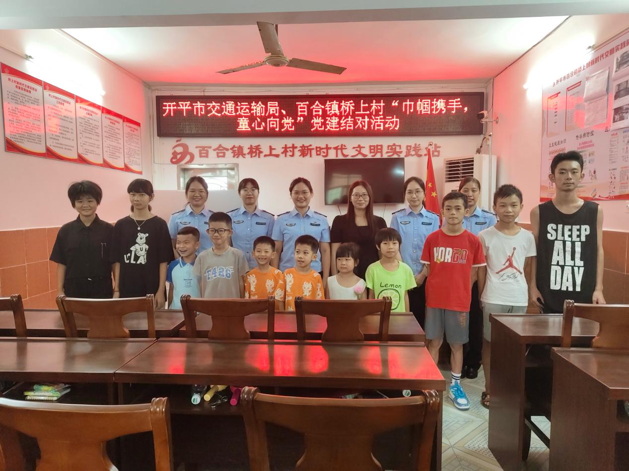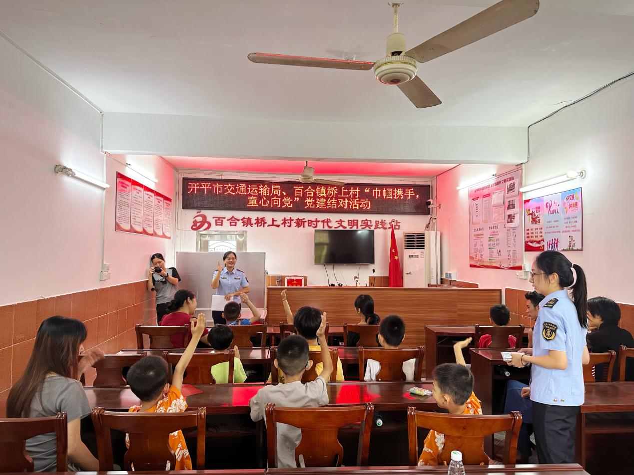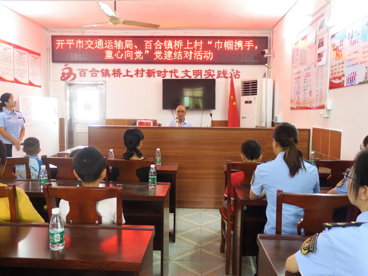 為深入學(xué)習(xí)貫徹黨的二十屆三中全會精神,全面推進(jìn)鄉(xiāng)村振興,將黨的最新理論成果和關(guān)懷傳遞到廣大少年兒童的心中,7月30日,開平市交通運(yùn)輸局“巾幗頭雁”市直導(dǎo)師駱妙嬋同志帶領(lǐng)“邑路芳華創(chuàng)新工作室”成員到百合鎮(zhèn)橋上村開展“巾幗攜手 童心向黨”黨建結(jié)對活動。橋上村黨員、家長和兒童共計30余人參加活動。