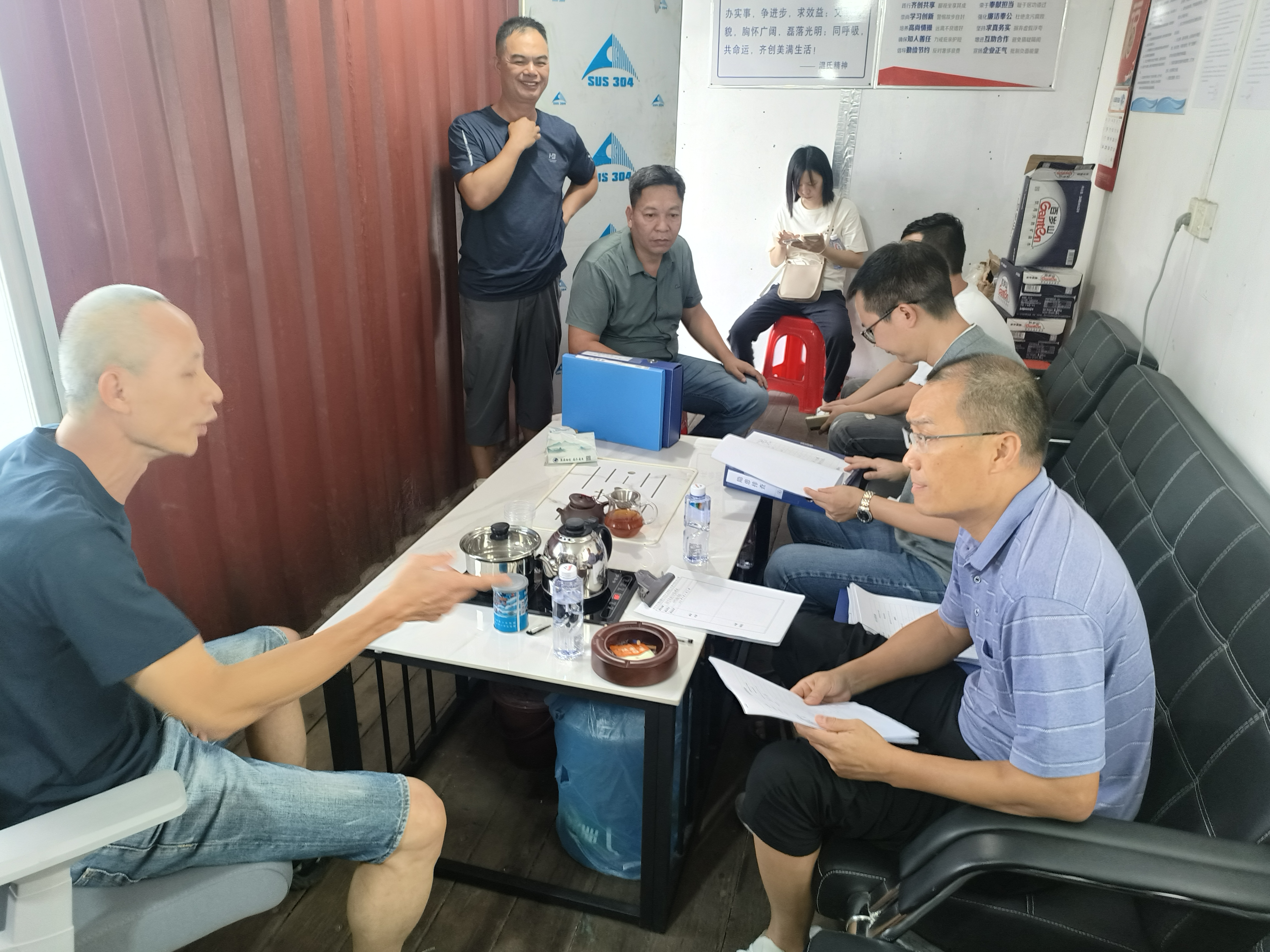 會(huì)后,我局職能股室前往開(kāi)平市沙岡泰運(yùn)貨物裝卸服務(wù)部開(kāi)展國(guó)慶前安全生產(chǎn)聯(lián)合檢查。檢查中,工作人員聽(tīng)取了企業(yè)負(fù)責(zé)人安全生產(chǎn)情況匯報(bào),認(rèn)真檢查企業(yè)安全生產(chǎn)制度、應(yīng)急演練開(kāi)展情況、培訓(xùn)教育臺(tái)賬和安全生產(chǎn)重大隱患排查整治開(kāi)展情況等,強(qiáng)調(diào)企業(yè)負(fù)責(zé)人要落實(shí)安全生產(chǎn)主體責(zé)任,強(qiáng)化碼頭設(shè)備的安全管理和從業(yè)人員教育培訓(xùn),確保我市交通運(yùn)輸行業(yè)安全生產(chǎn)工作平穩(wěn)有序。
