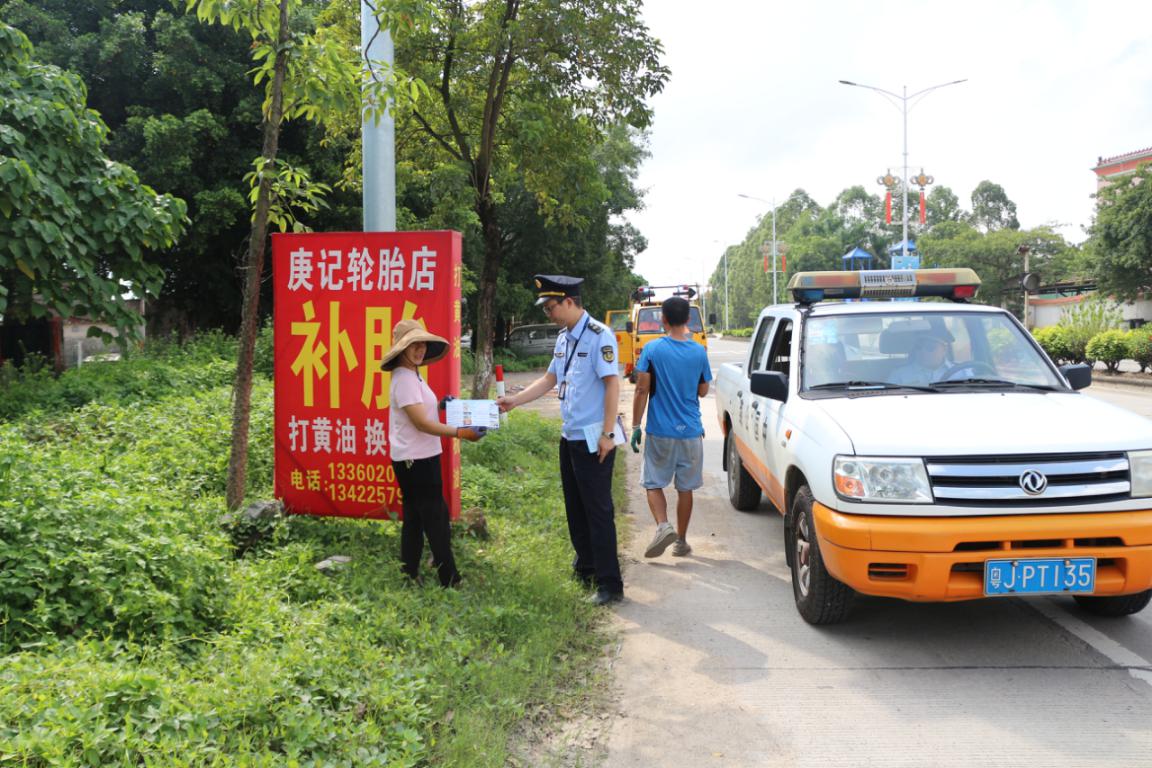 此次行動共派出路政管理人員和養(yǎng)護(hù)工人20人次,執(zhí)法、養(yǎng)護(hù)車輛4輛,整治占用公路用地擺放燈箱廣告38個、非公路標(biāo)志15個,勸離擺攤商販3個,派發(fā)宣傳單張64份,有效對占道經(jīng)營的商家、群眾進(jìn)行勸導(dǎo)教育和宣傳,提高路邊商戶道路交通安全意識,杜絕占道經(jīng)營行為,確保公路安全通暢。
