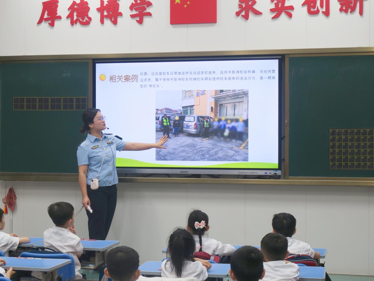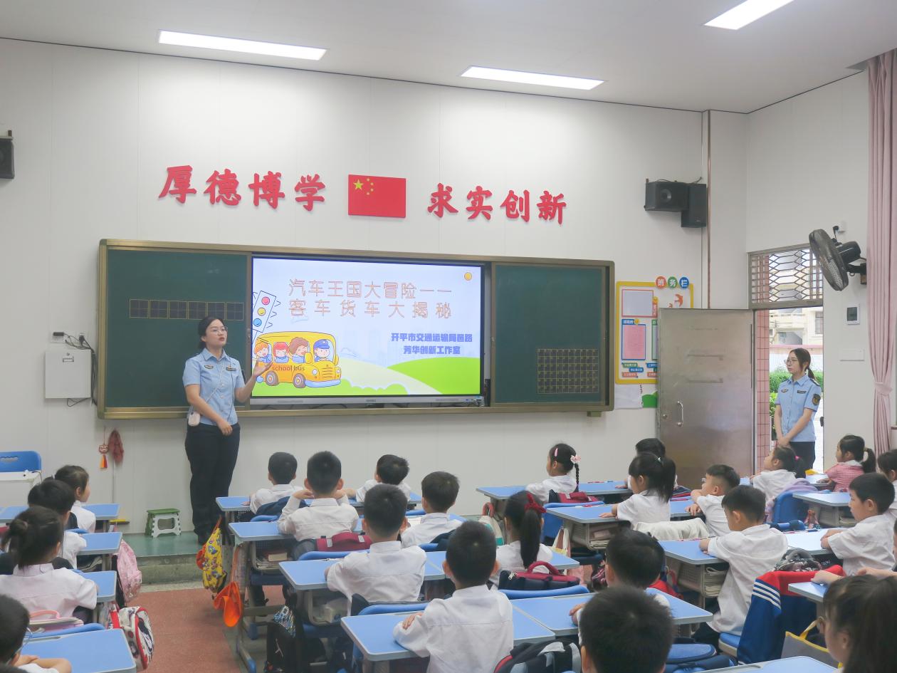 為進一步增強學(xué)生交通安全意識,普及交通運輸行業(yè)法律法規(guī),為學(xué)生安全出行保駕護航,同時推動2025年開平市道路交通運輸整治聯(lián)合執(zhí)法行動深入開展,做到“執(zhí)法+普法”相結(jié)合,市交通運輸局“邑路芳華”工作室于4月27日走進開平市長師附屬小學(xué),為學(xué)生們帶來一場生動有趣的交通運輸安全普法宣傳活動。