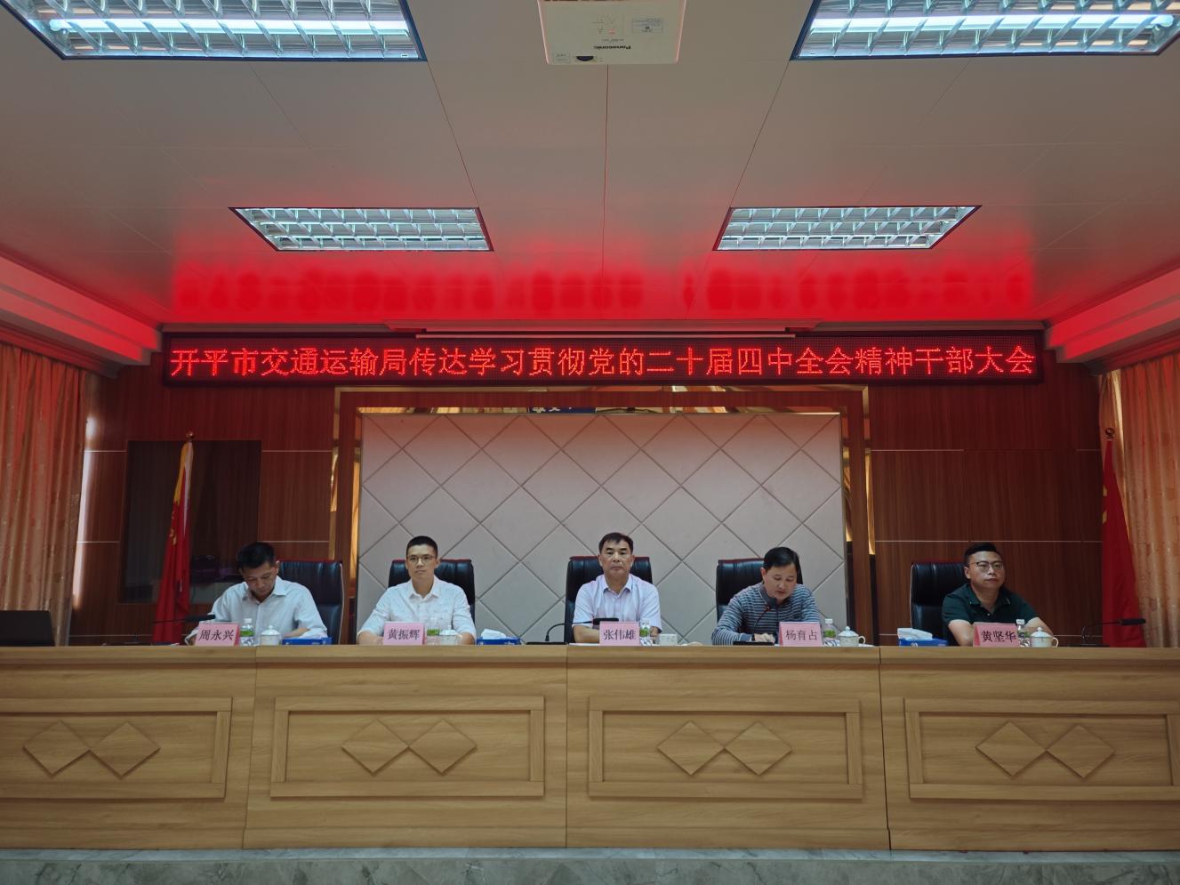 10月30日上午,開平市交通運(yùn)輸局召開傳達(dá)學(xué)習(xí)貫徹黨的二十屆四中全會(huì)精神干部大會(huì),深入學(xué)習(xí)領(lǐng)會(huì)習(xí)近平總書記在黨的二十屆四中全會(huì)上的重要講話精神和全會(huì)精神,全面貫徹落實(shí)省、江門市、開平市委常委會(huì)及干部大會(huì)精神,研究部署全局貫徹落實(shí)舉措,動(dòng)員全體干部職工迅速把思想和行動(dòng)統(tǒng)一到全會(huì)精神上來,推動(dòng)交通運(yùn)輸事業(yè)高質(zhì)量發(fā)展。局領(lǐng)導(dǎo)、機(jī)關(guān)各股室、大隊(duì)及直屬事業(yè)單位負(fù)責(zé)人參加會(huì)議。