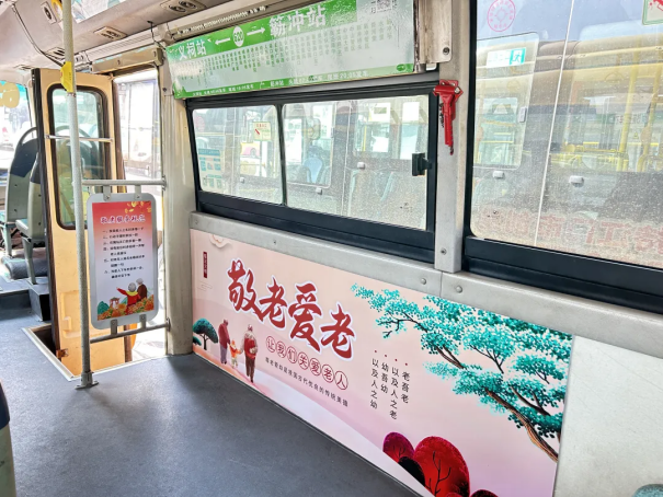 為精準(zhǔn)對(duì)接老年群體出行需求,市國(guó)順公司在620路所有公共汽車車頭張貼了醒目的“敬老愛(ài)老公交線路”標(biāo)識(shí),車廂內(nèi)專門設(shè)置敬老專座并張貼敬老愛(ài)老文明宣傳標(biāo)語(yǔ),營(yíng)造愛(ài)老敬老的濃厚氛圍。同時(shí),車廂里還配備了裝有風(fēng)油精、正骨水、跌打萬(wàn)花油、創(chuàng)口貼、碘伏等藥品的應(yīng)急藥箱,供老年人按需取用,滿足老年乘客特殊需求。