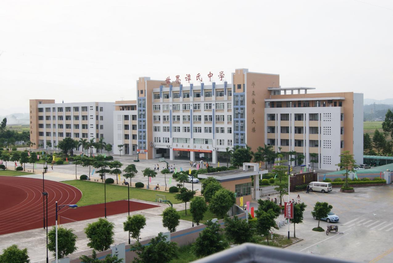 開平市世界譚氏中學(xué)是開平市城區(qū)的一所全寄宿初級中學(xué),始建于2006年,由開平市委市政府和世界譚氏宗親共同籌資3645萬元興建,位于開平市長沙科技路9號,學(xué)校占地面積91.9畝。學(xué)?,F(xiàn)有教職工151人,教學(xué)班44個,在校學(xué)生人數(shù)2214人。學(xué)?,F(xiàn)有華正教學(xué)大樓、譚鵬飛教學(xué)樓、譚炳立體育館、譚逢敬實驗樓、學(xué)生宿舍樓、學(xué)生食堂等共9幢建筑物以及400米標(biāo)準(zhǔn)塑膠環(huán)形跑道和標(biāo)準(zhǔn)的真草足球場、籃球場、羽毛球場等。