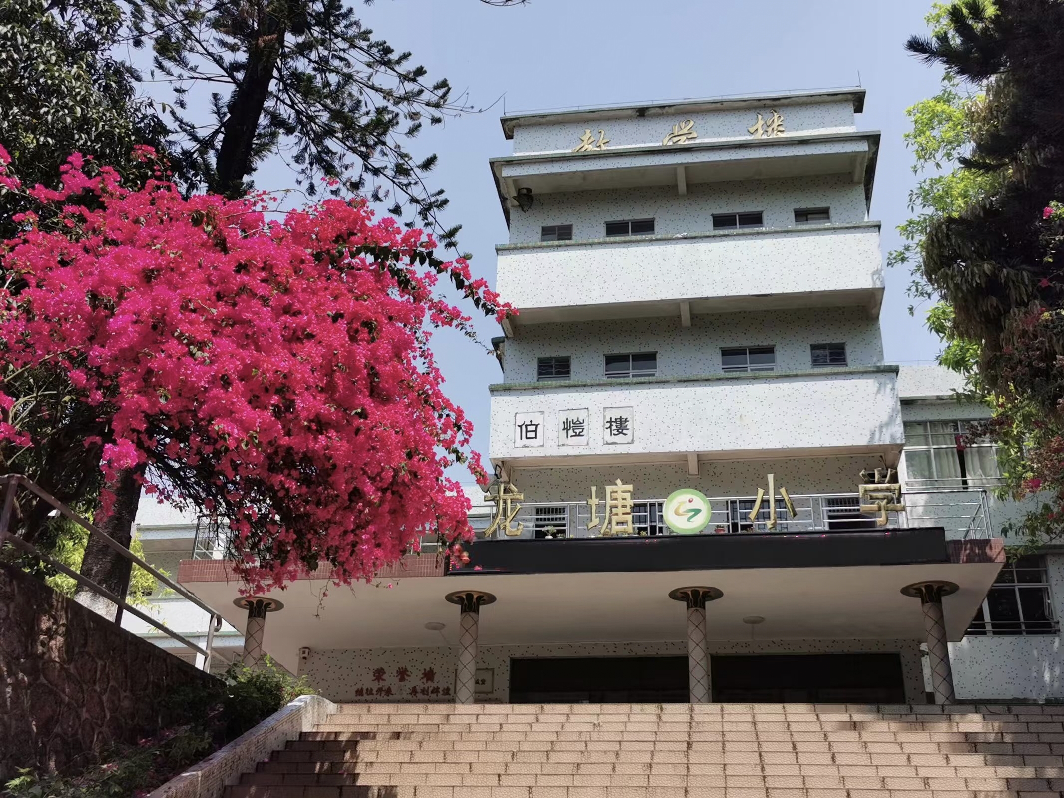 龍?zhí)列W(xué)地處潭江河畔的龍?zhí)翞?,這里交通方便、綠樹成蔭、環(huán)境幽雅,是辦學(xué)的理想之地。